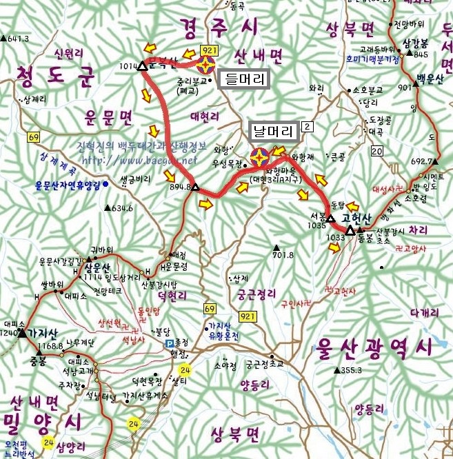 고헌산 산행지도