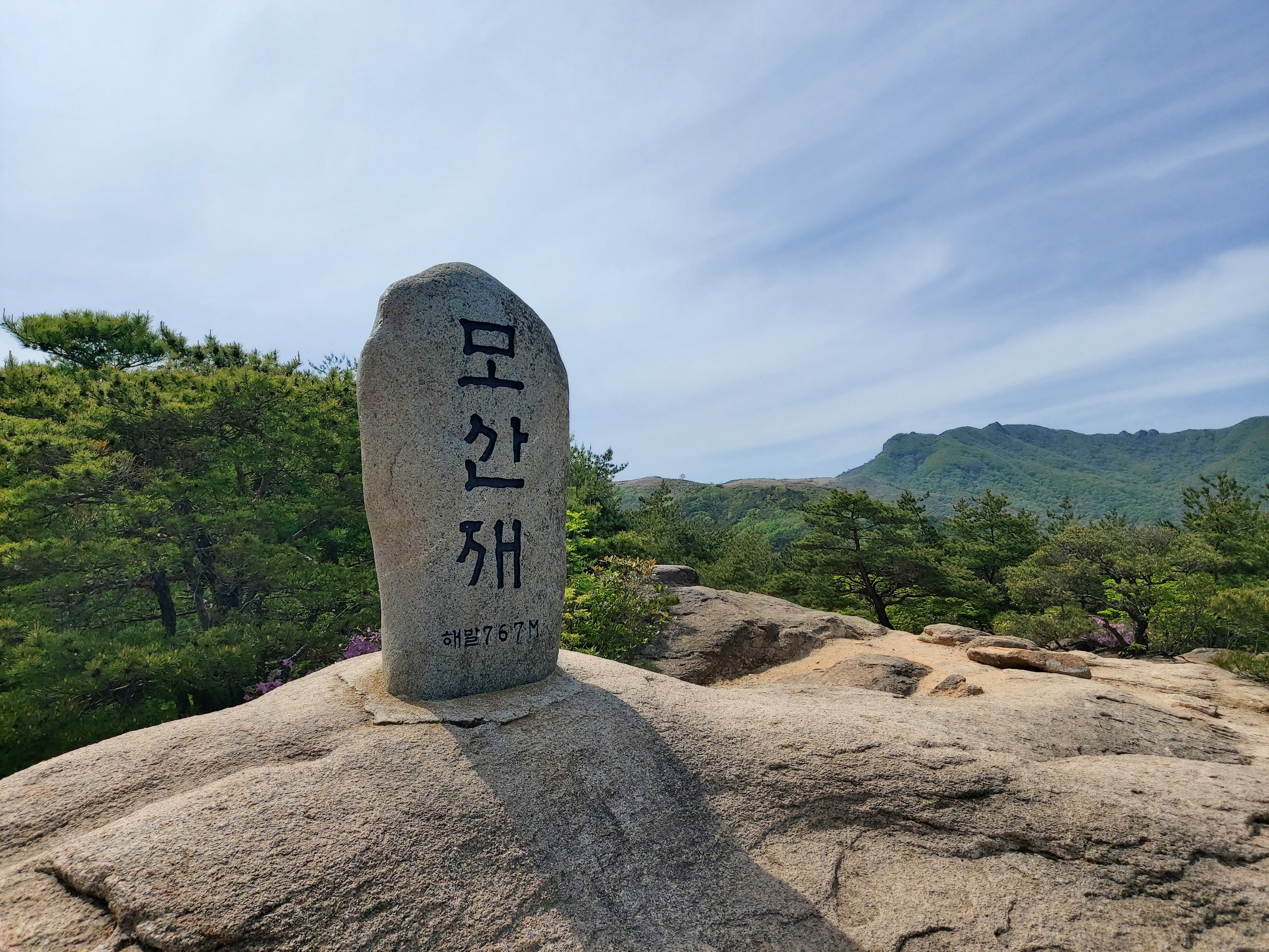 모산재 정상 표지석 해발 767m 14:40