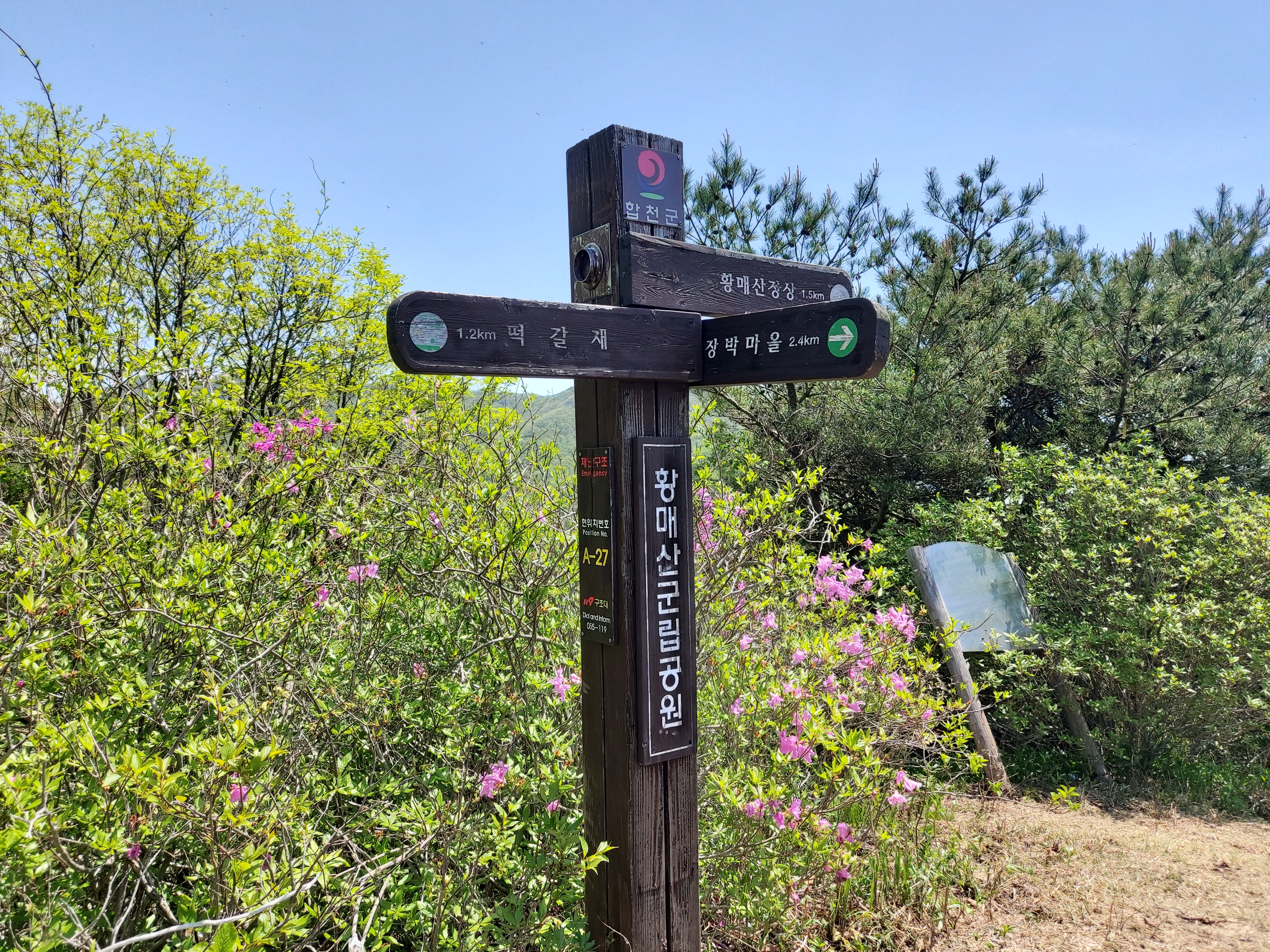 황매산 정상 황매산상봉 능선 삼거리 이정목 12:51