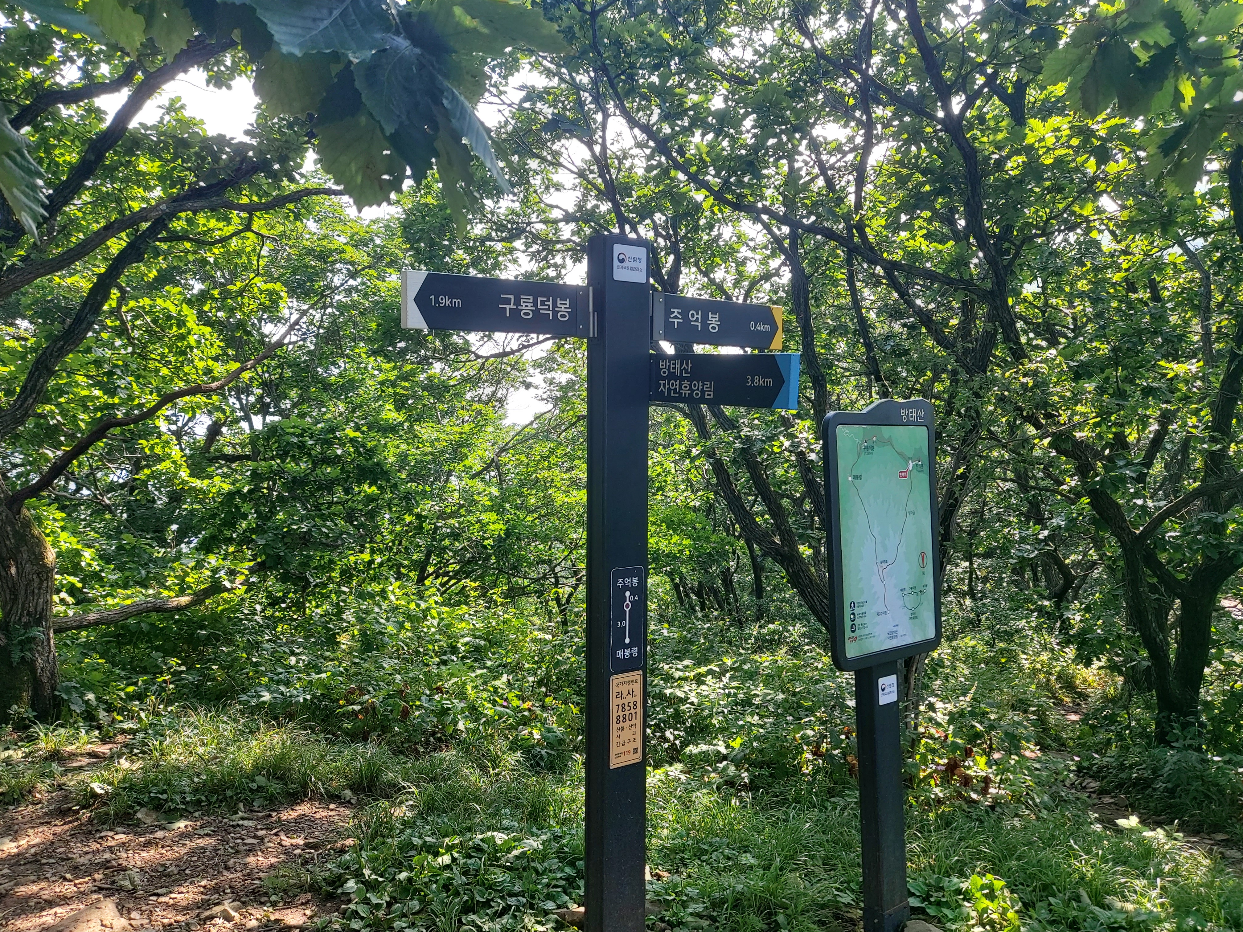 방태산 주억봉 표지목 과 이정목 15:38