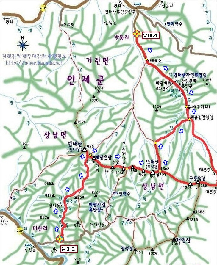 날머리 : 강원도 인제군 기린면 방동리 291-1