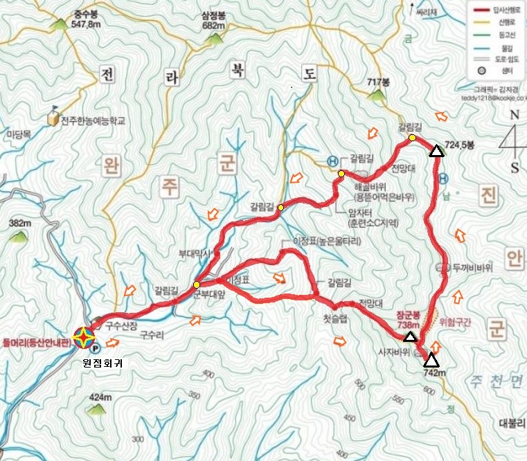 산 행 위 치 : 장군봉 완주군 진안군 경계
