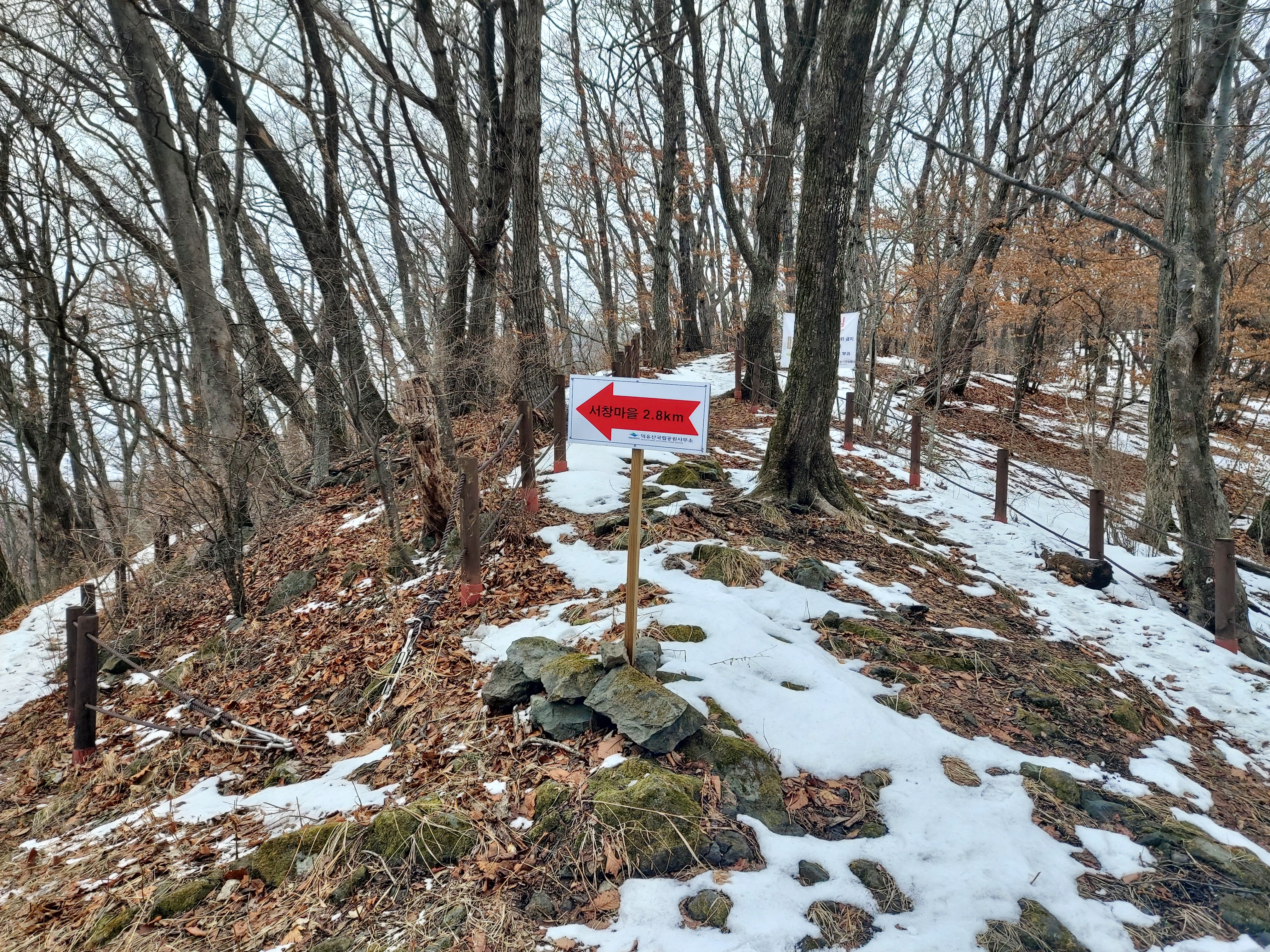 사창마을 향로봉 길림길 삼거리 이정목 12:13