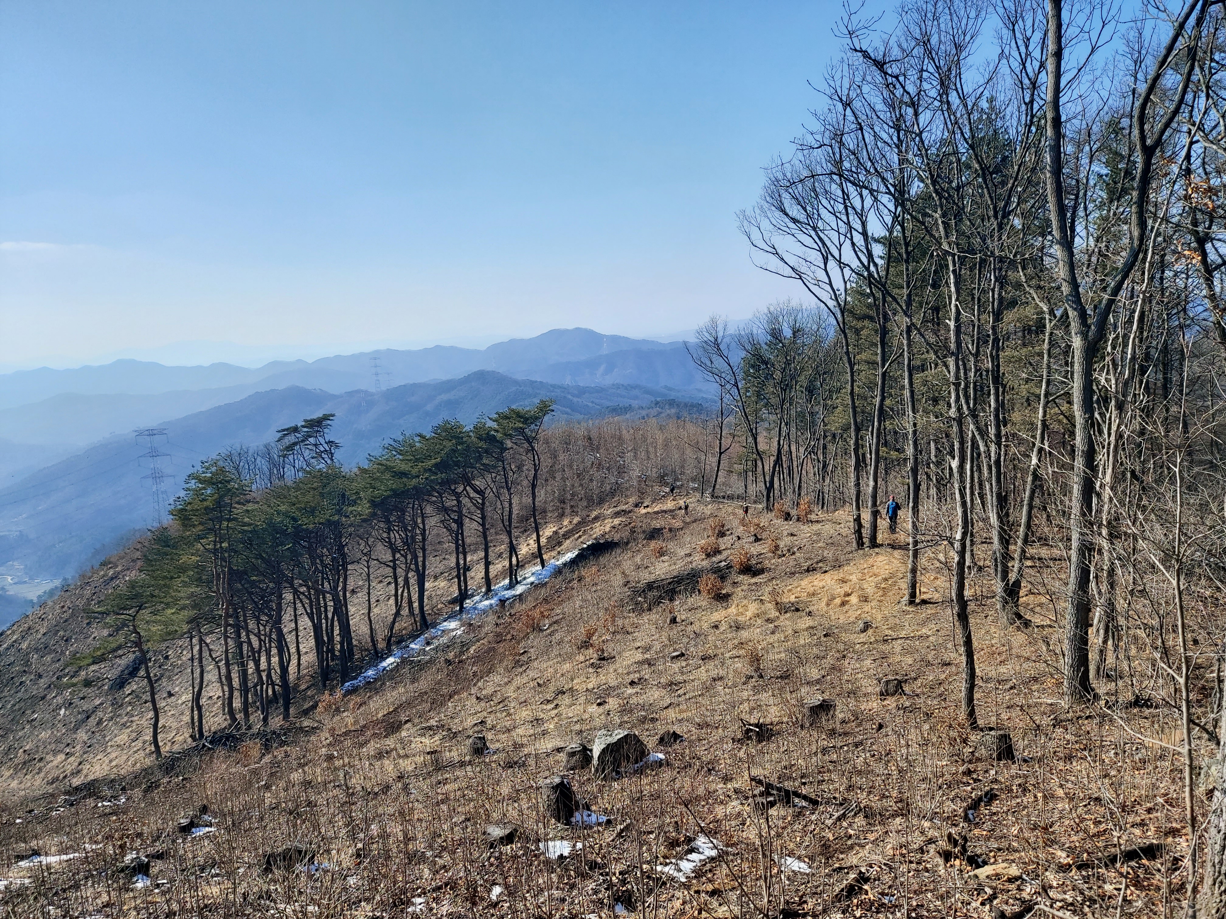 뒤돌아서 본 금북정맥 능선 15:17