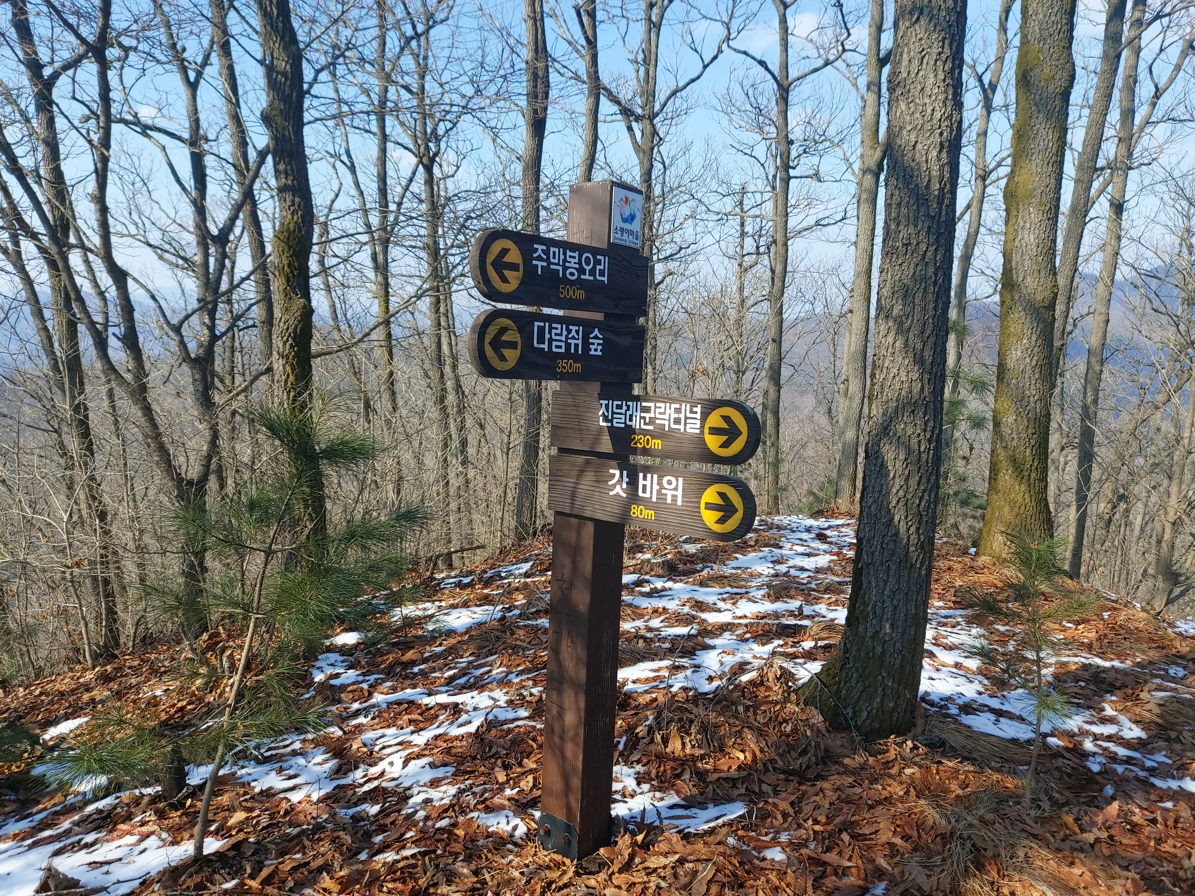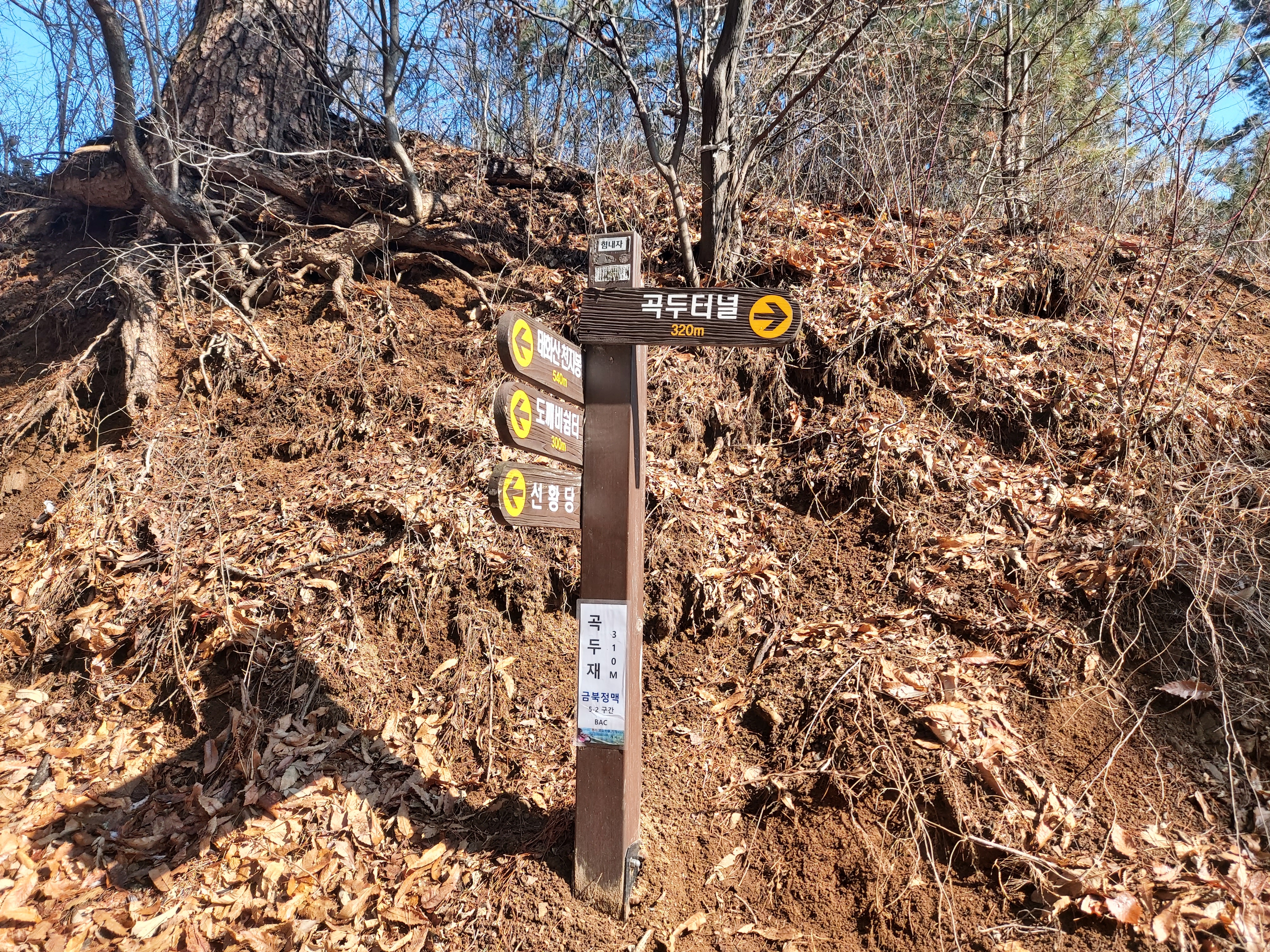태화산 갈림길 이정목 왕복 각흘고개 진행 14:36