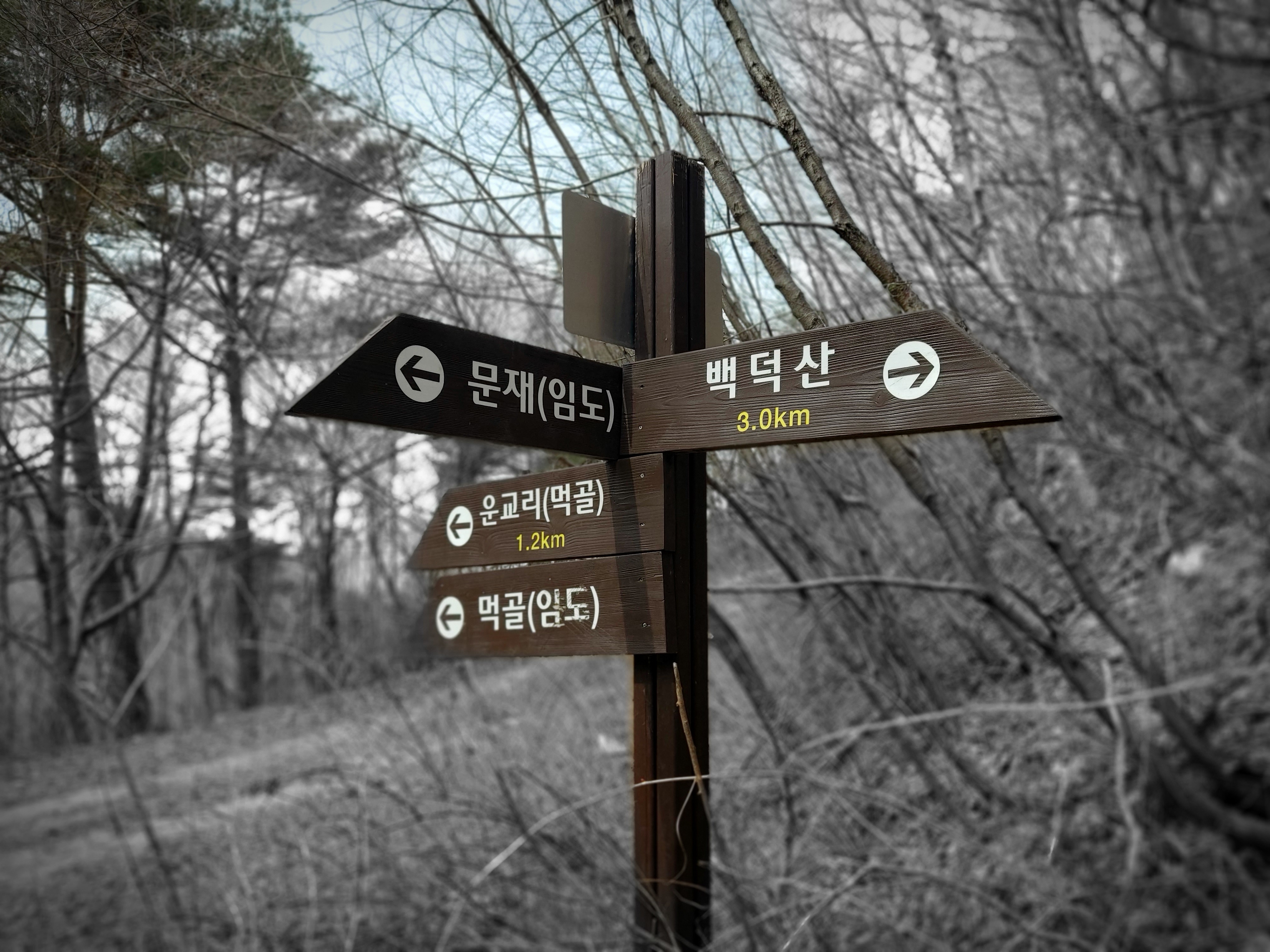 먹골임도 사거리 이정목 운교리 주차장 1.2km 13:46