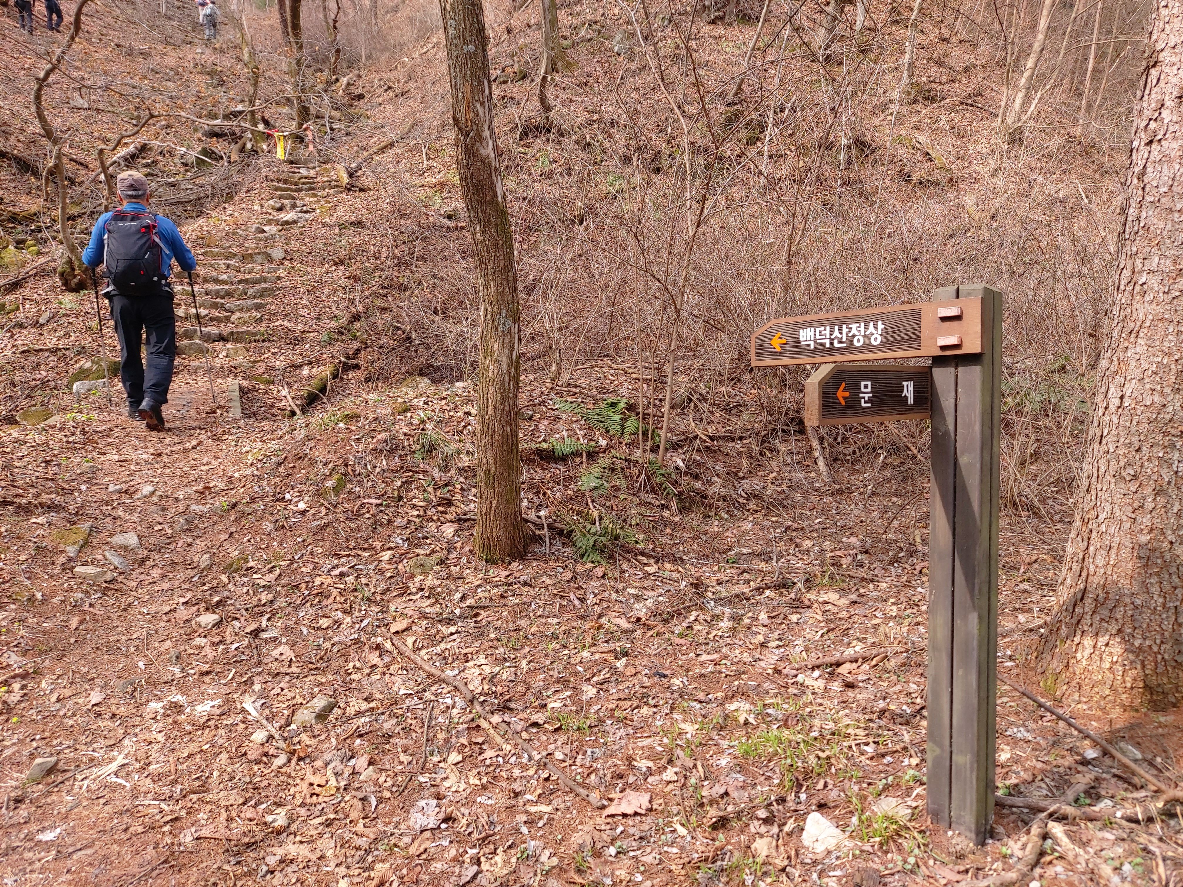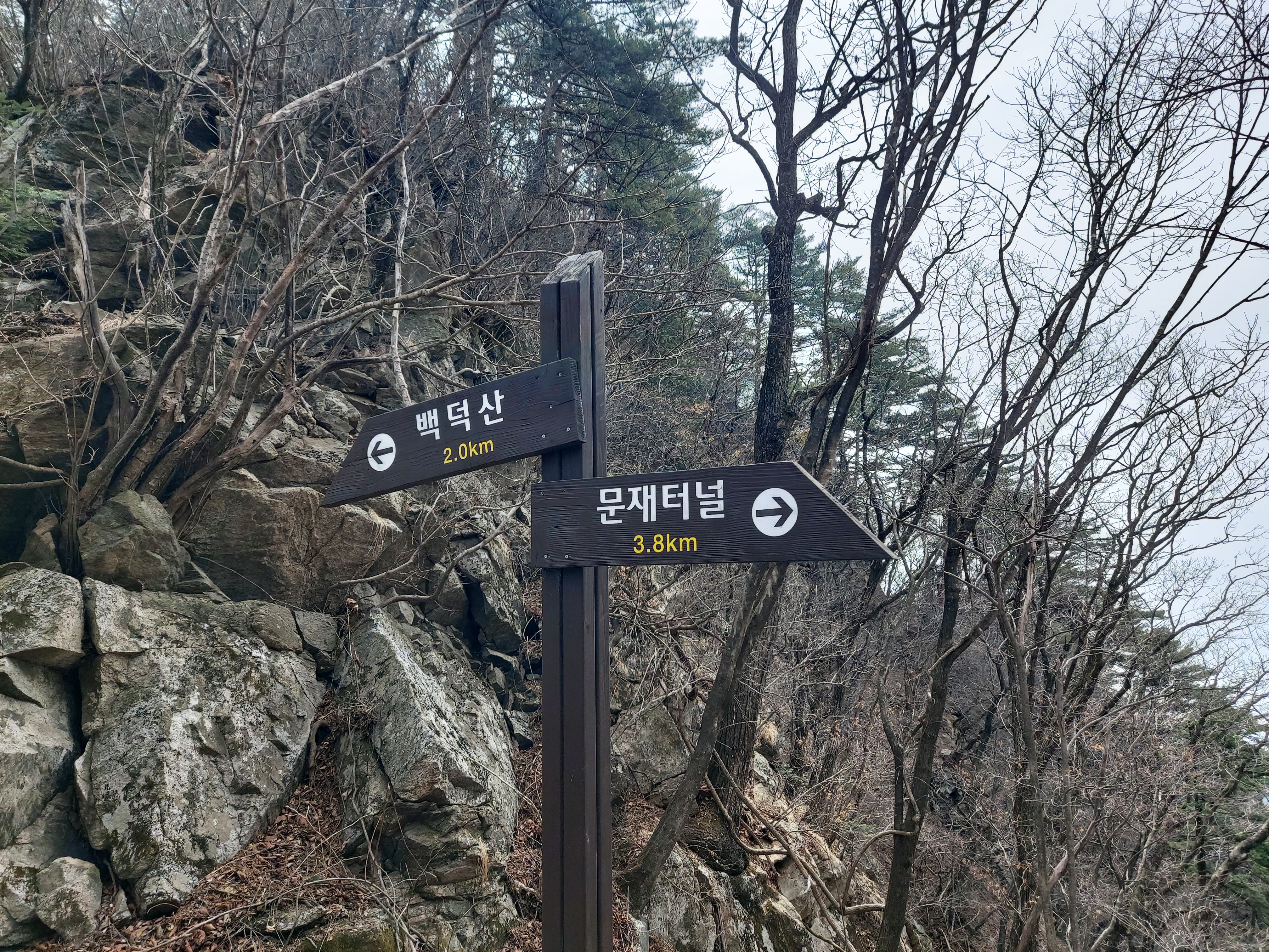 당재 이정목 백덕산 정상 2.0km 남았습니다. 11:12