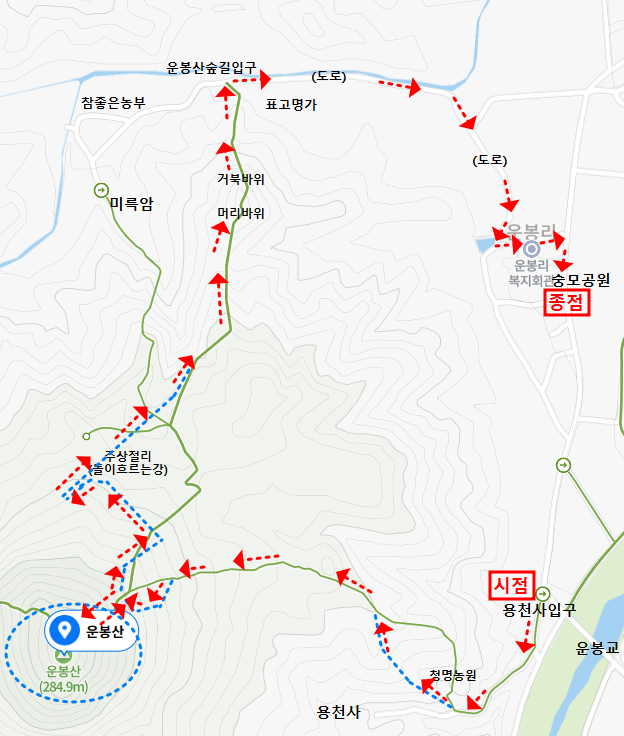 산 행 운봉산 : 운봉교 삼거리 – 용천사입구