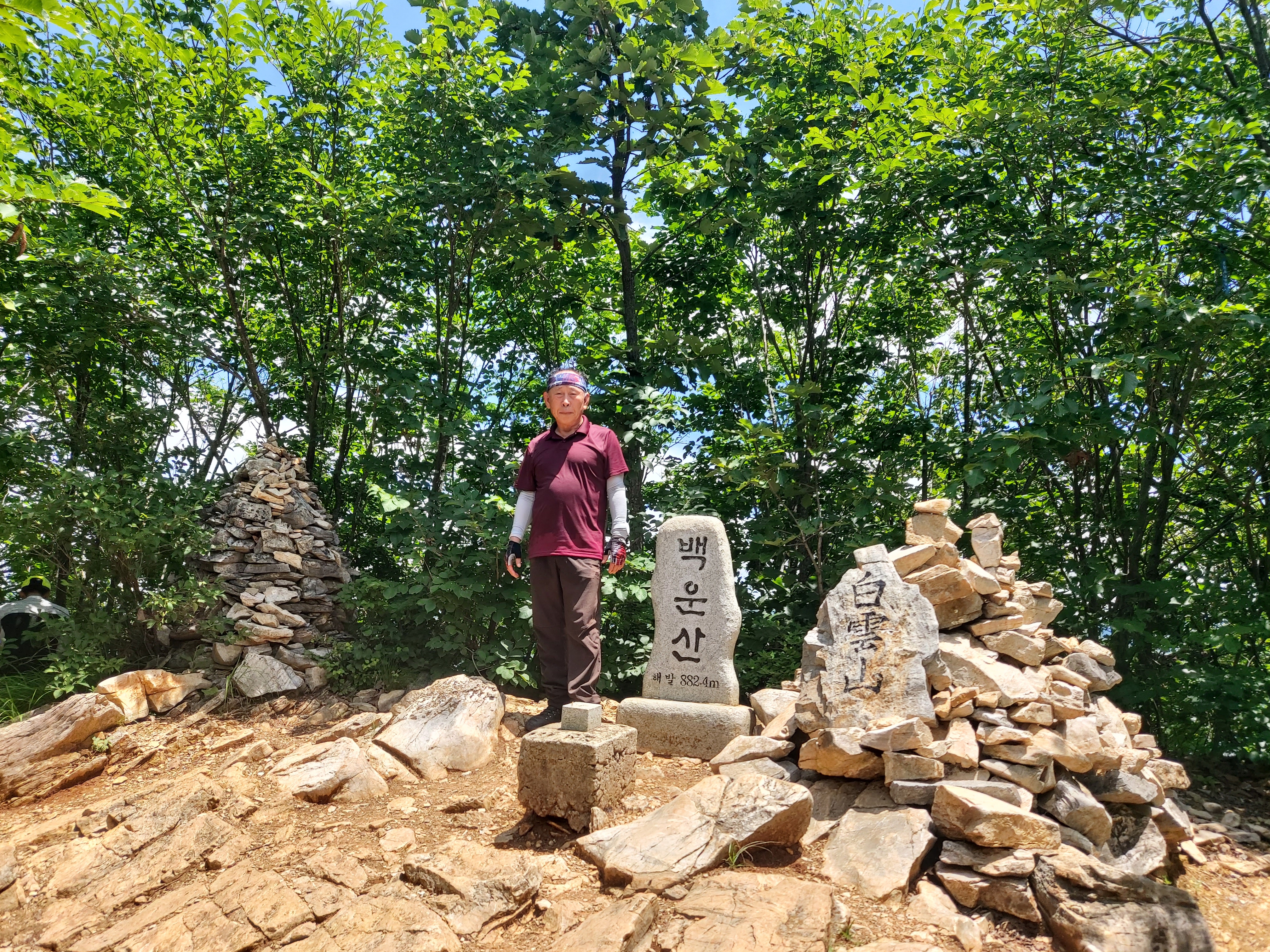 정선 동강 백운산 정상 표지석 해발 882.4m 12:20