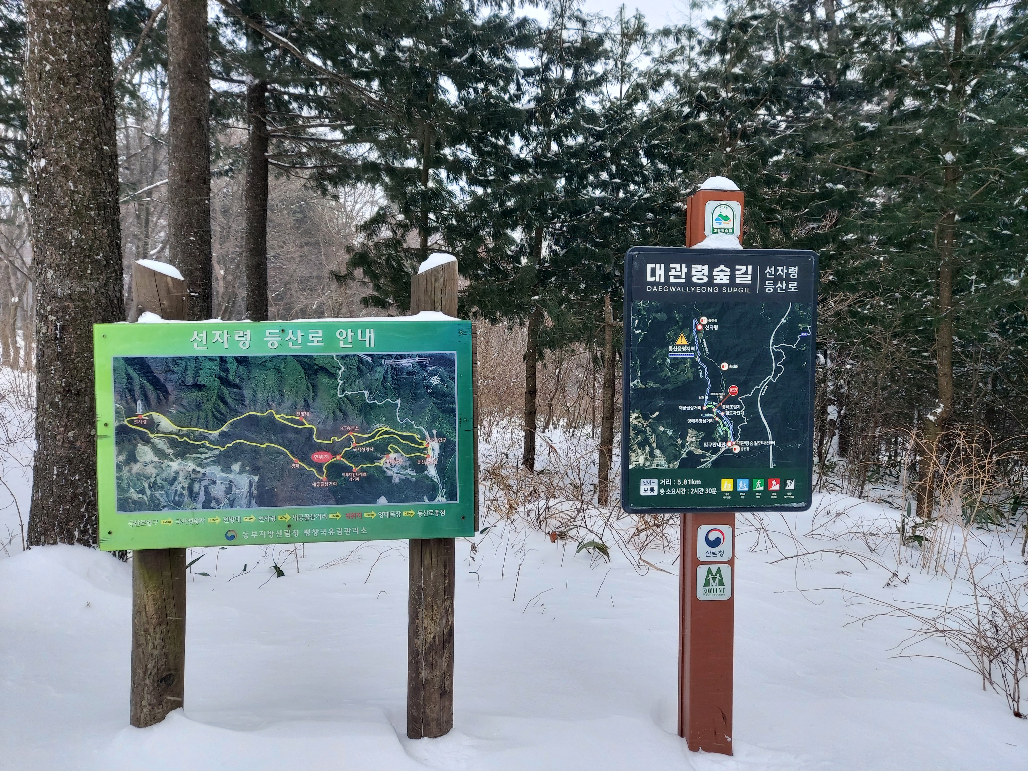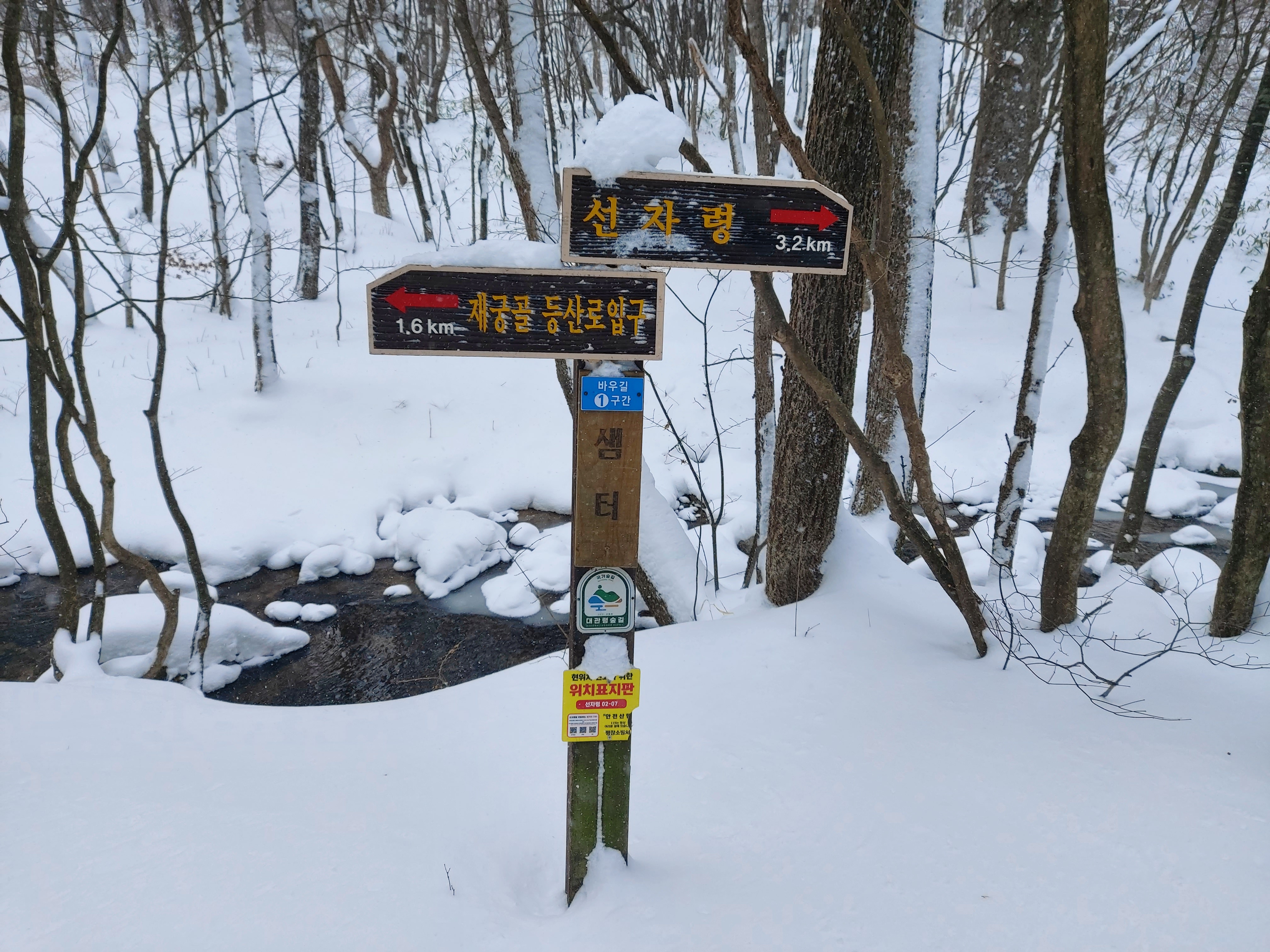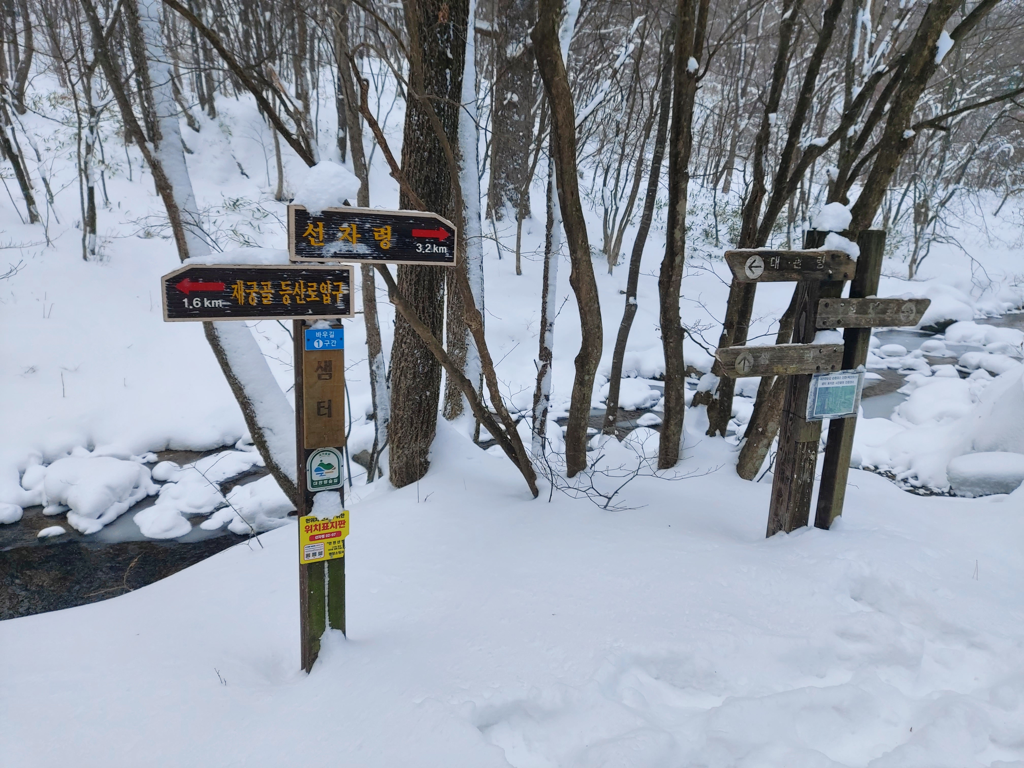 선자령 계곡 쉼터 이정목