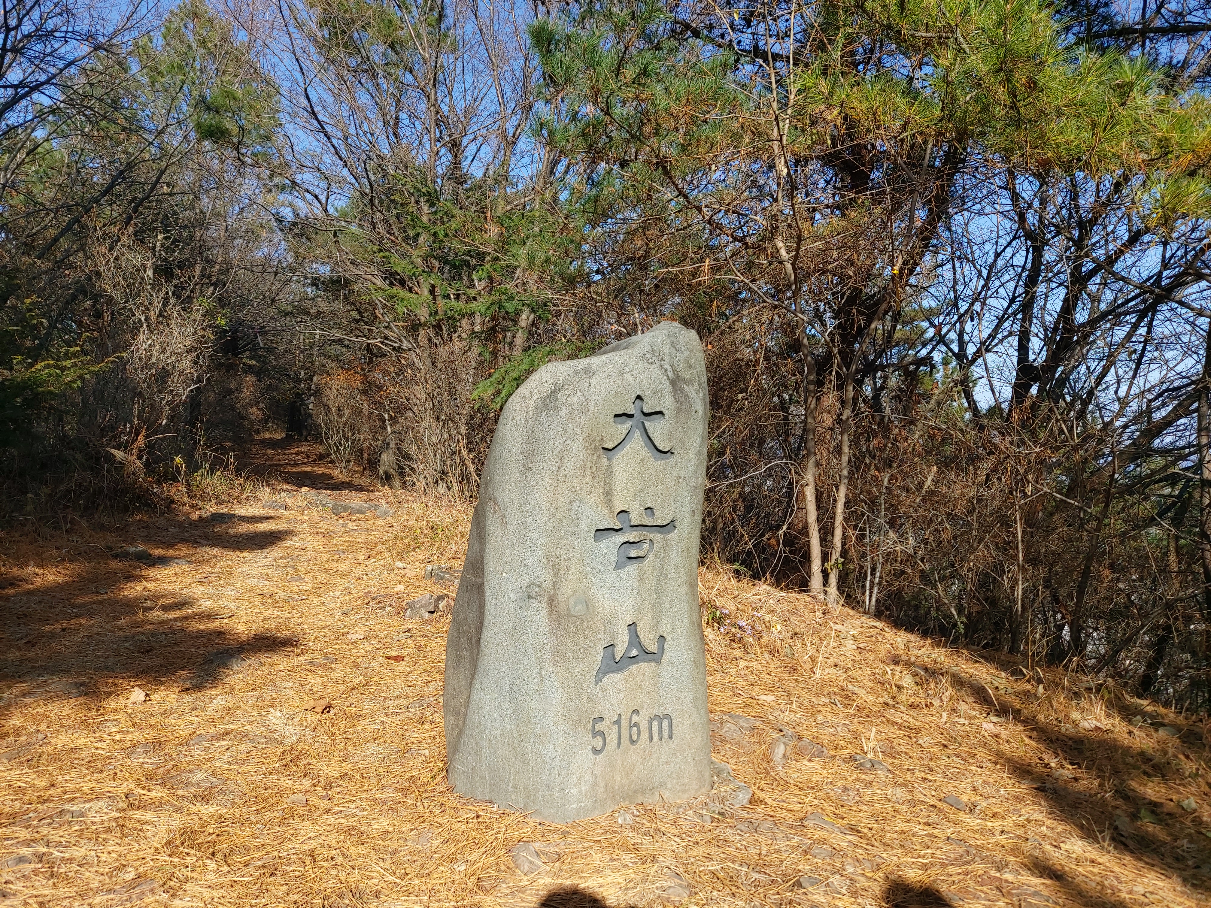 대곡산 정상 표지석 해발 516m 봉 인증