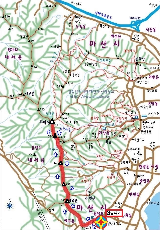 마산 무학산 산행지도 만날고개 출발