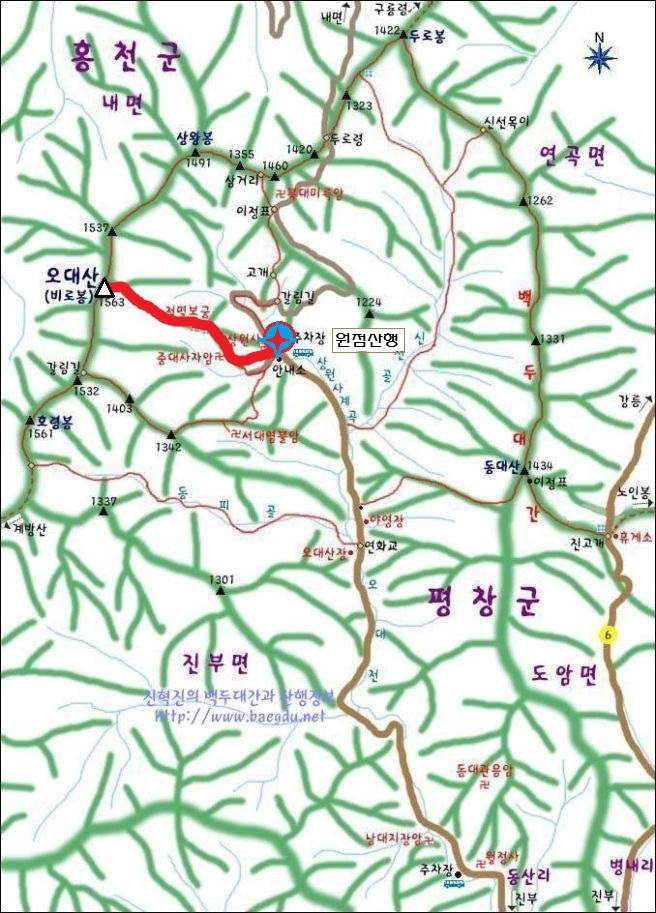 오대산 산행지도