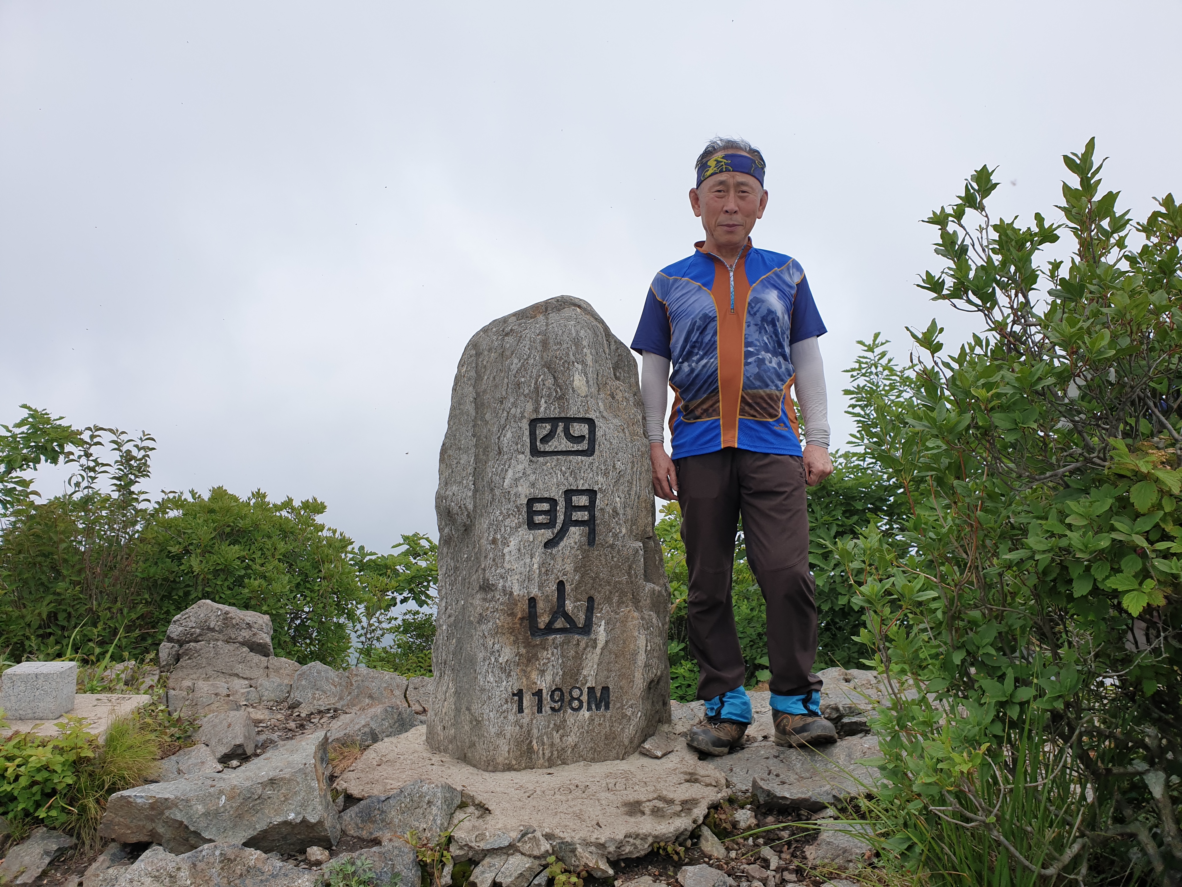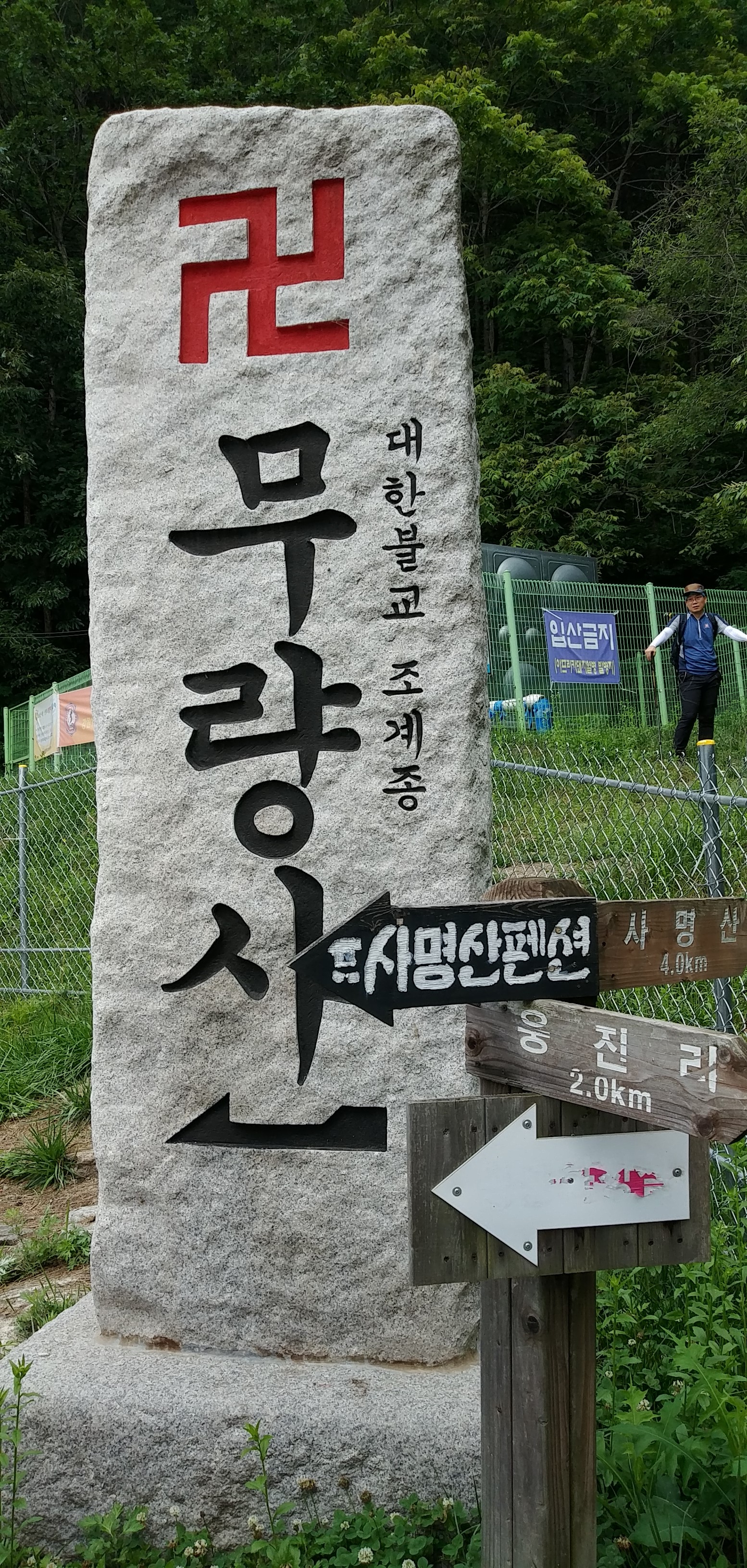 사명산 정상 표지석에서 인증 사진