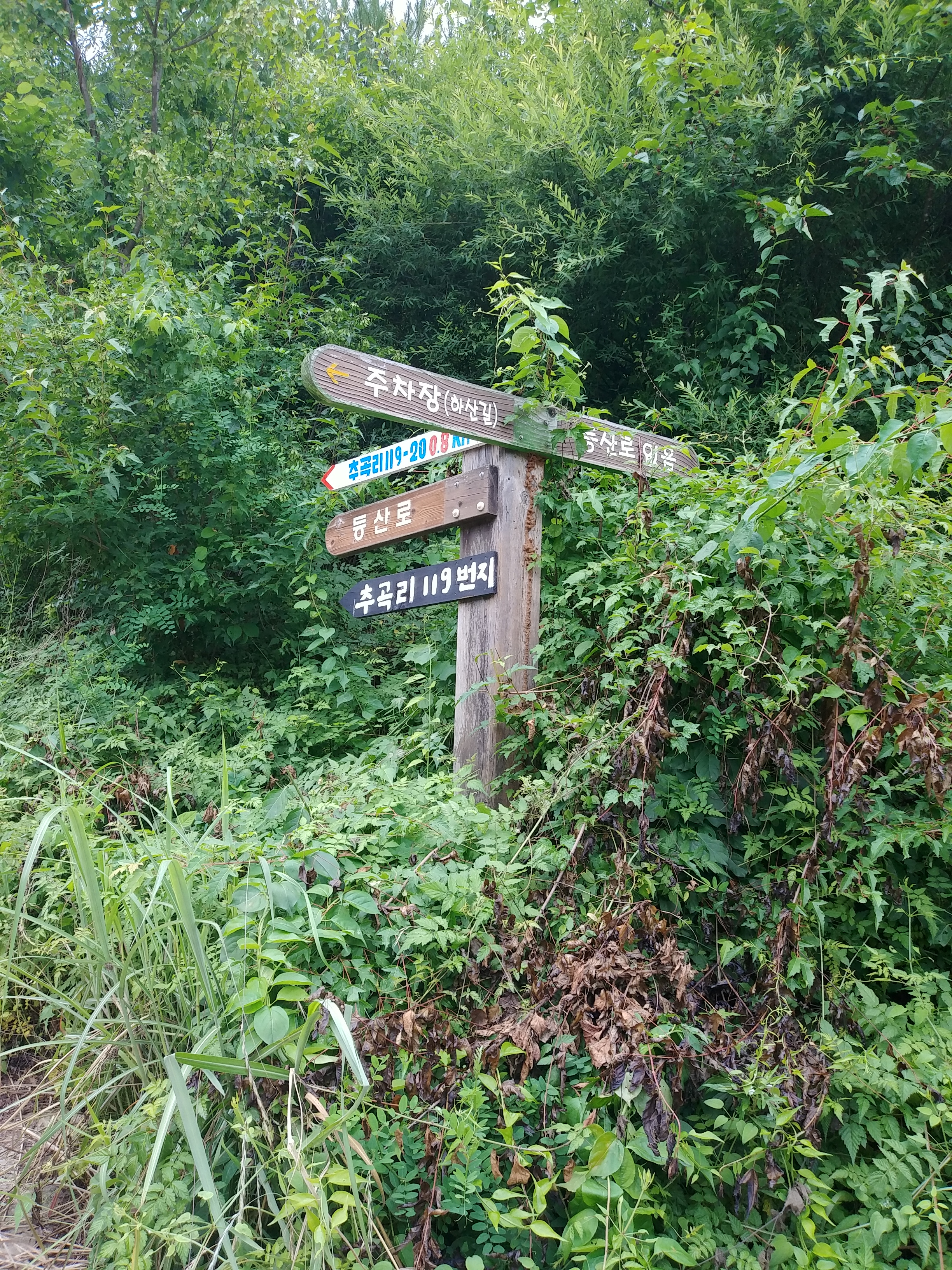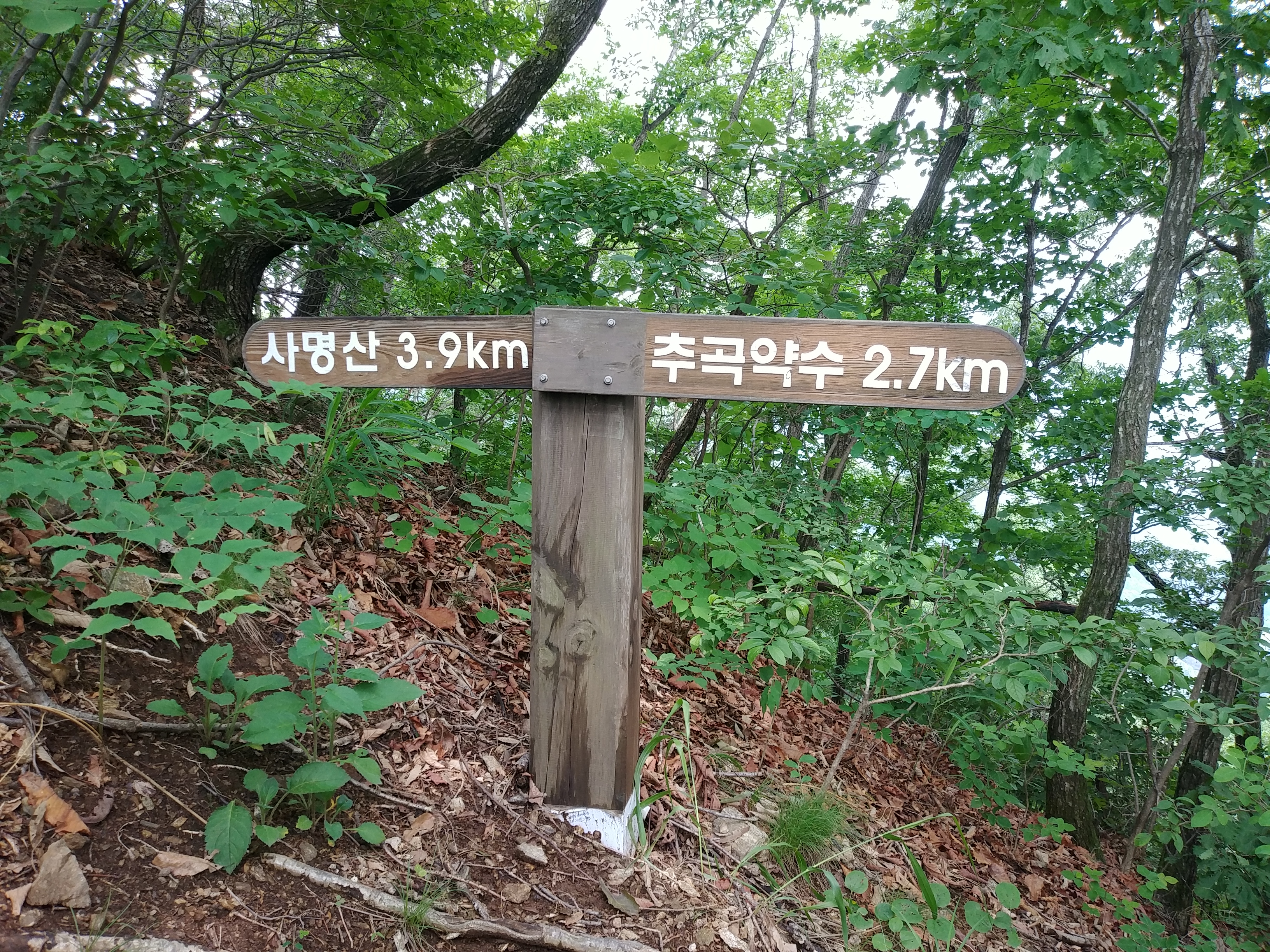 웅진리 추곡약수터 가는 갈림길 삼거리 이정목 14:28