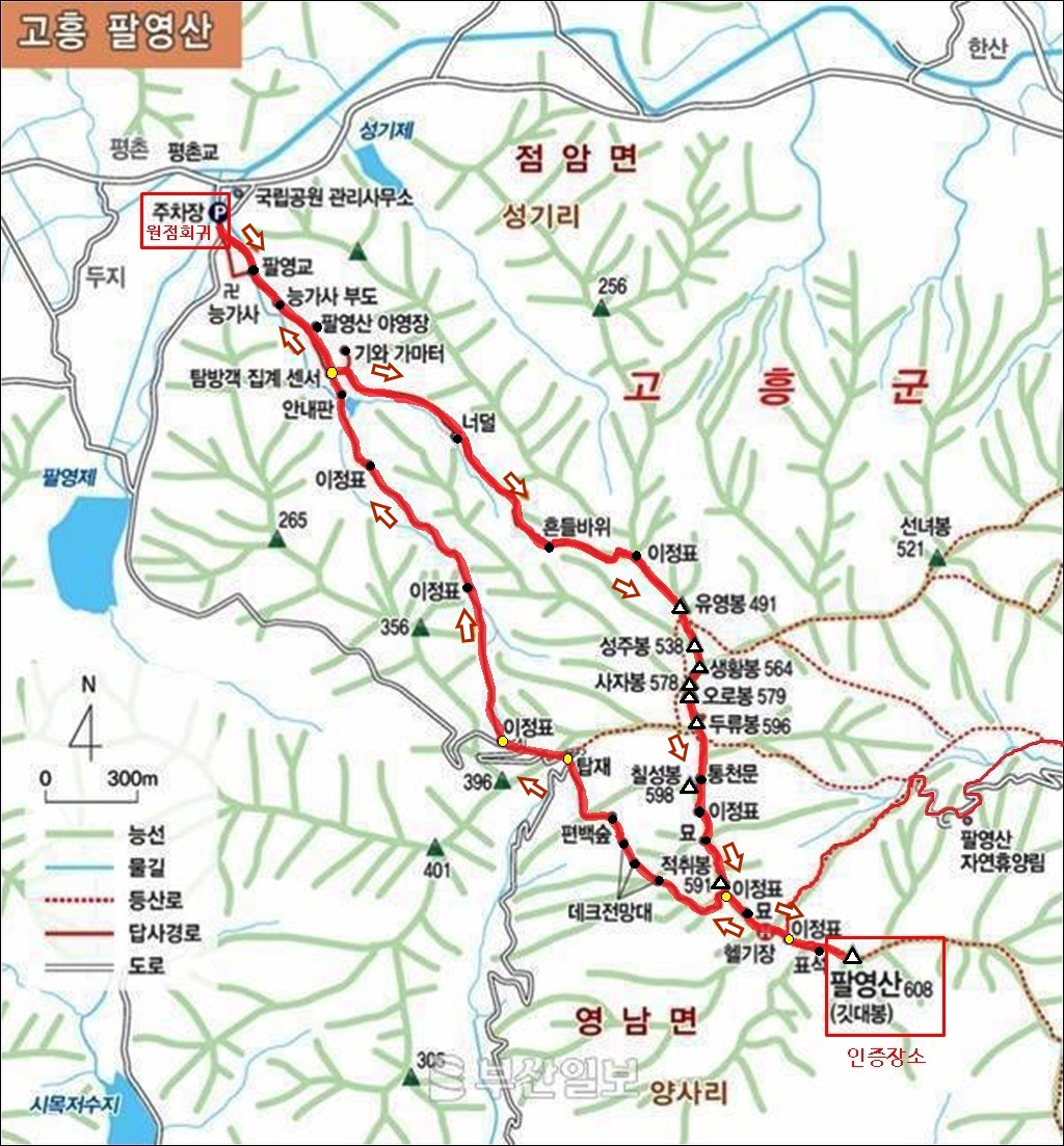 팔영산 산행지도