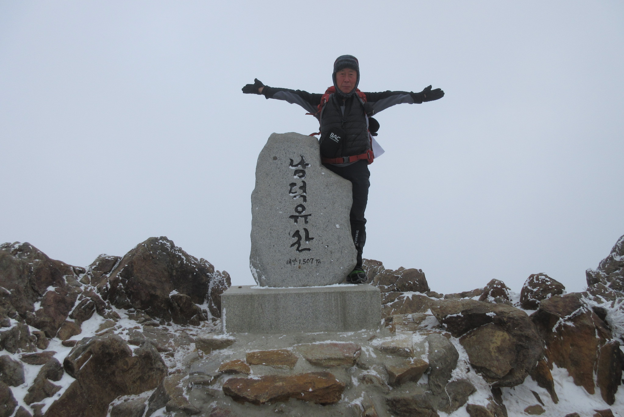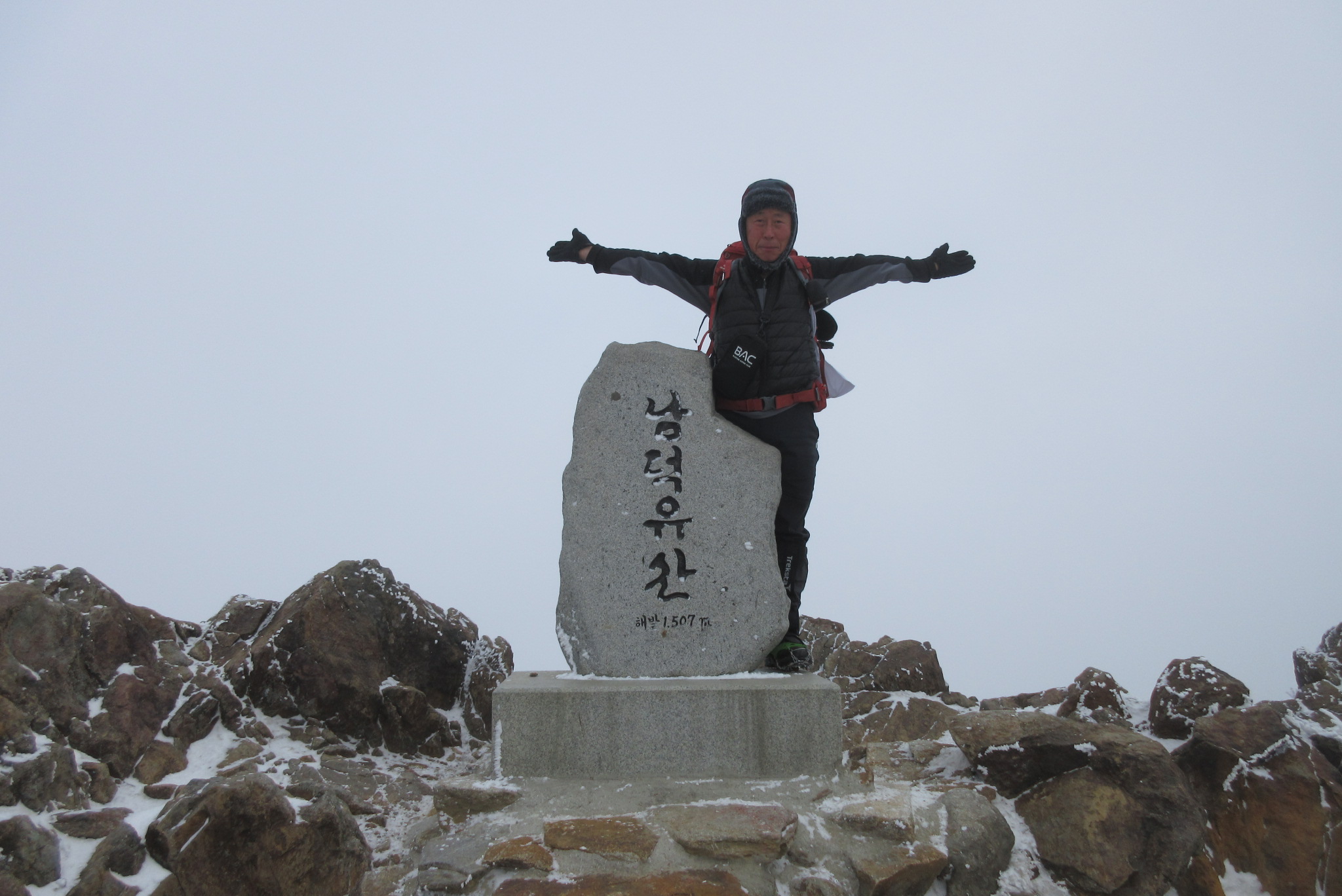 13:16 남덕유산 정상 표지석에서 인증