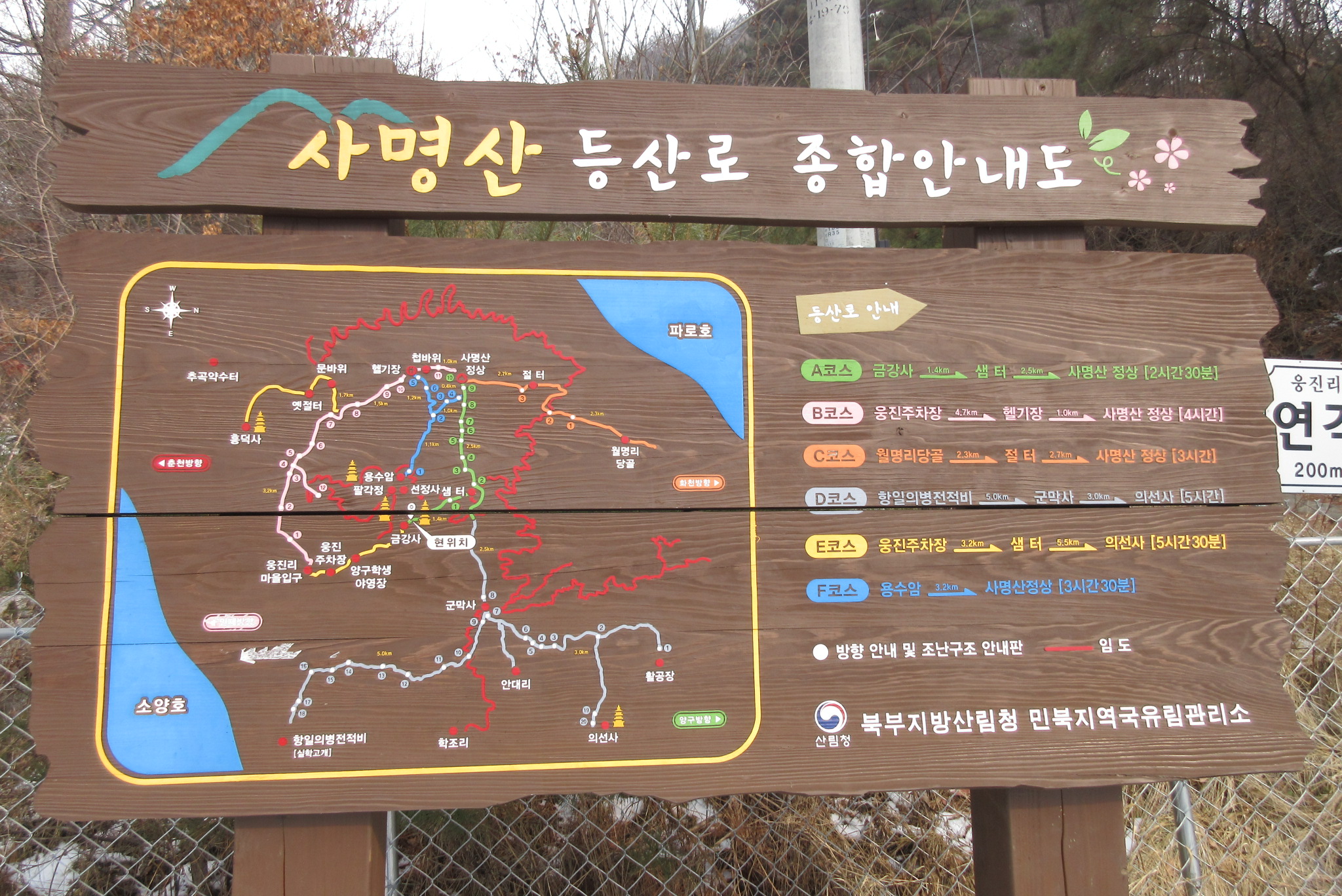 월명산 사명산 갈림길 삼거리 이정목 12:22