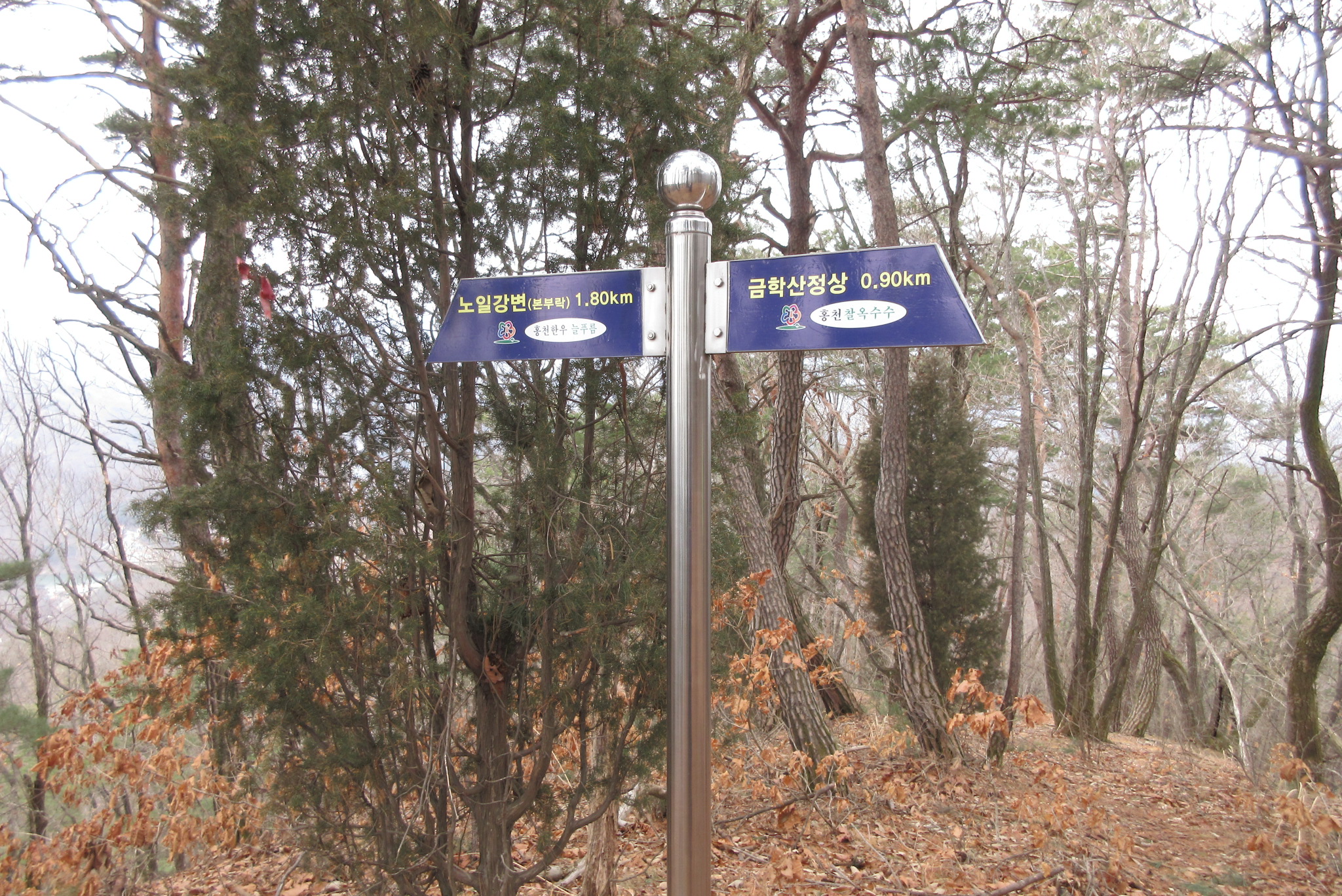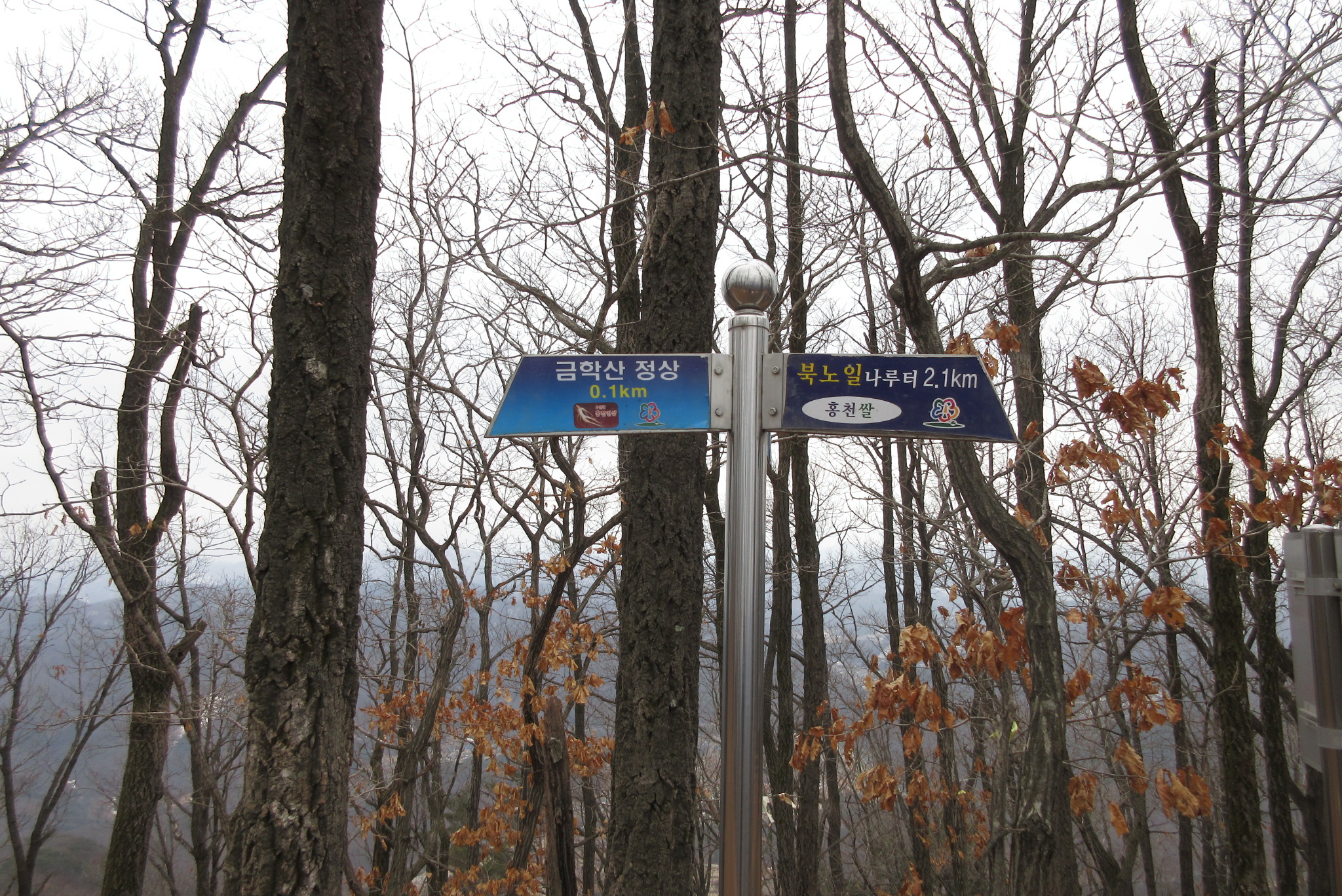 금학산 정상 삼거리 갈림길 북노일 방향르로 하산
