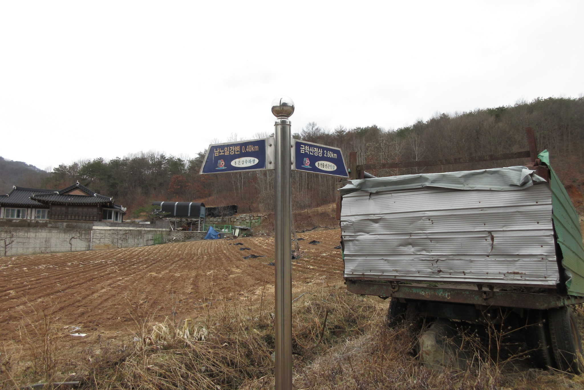 삼거리 갈림길 이정목 노일강변 방향으로 진행 11:19
