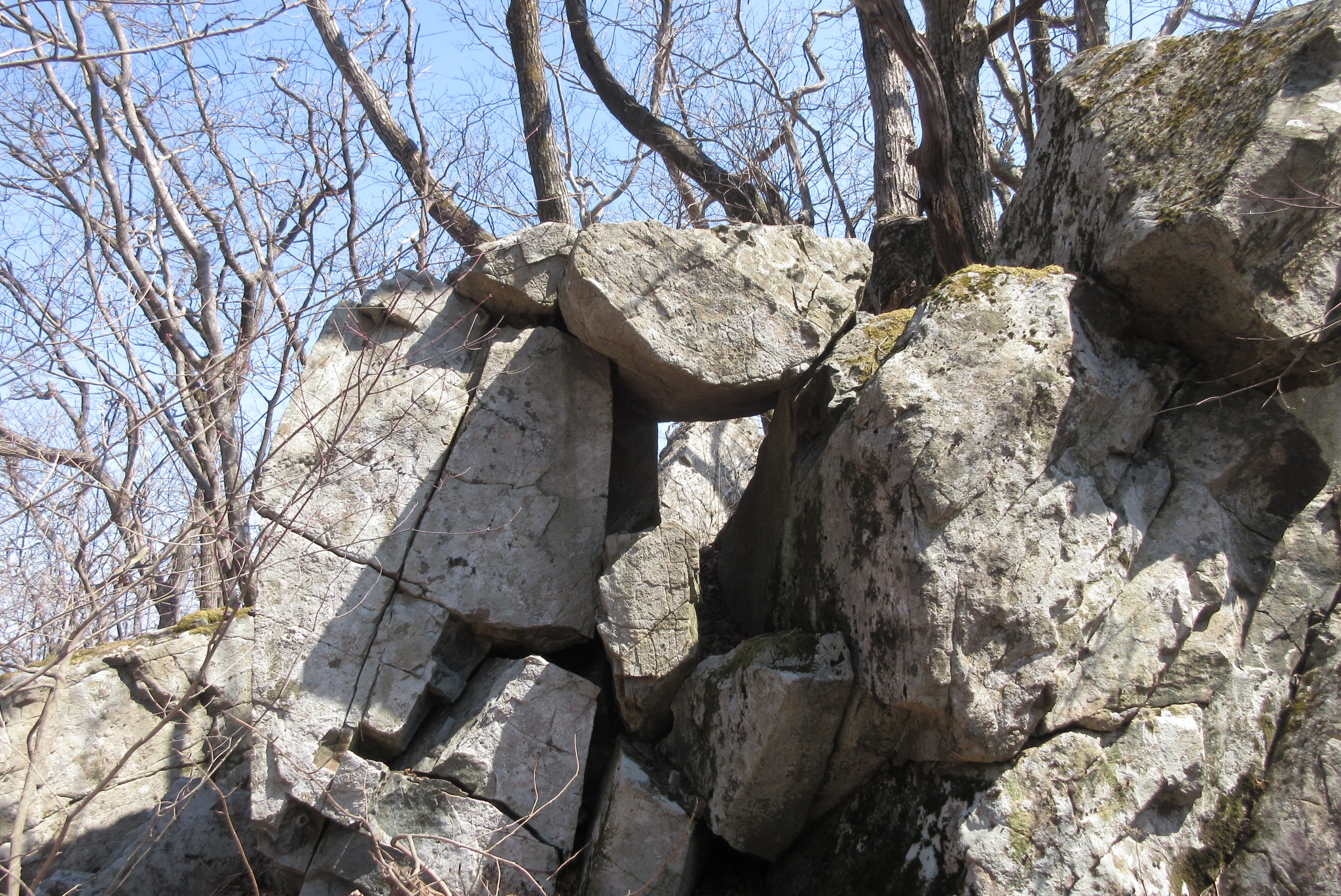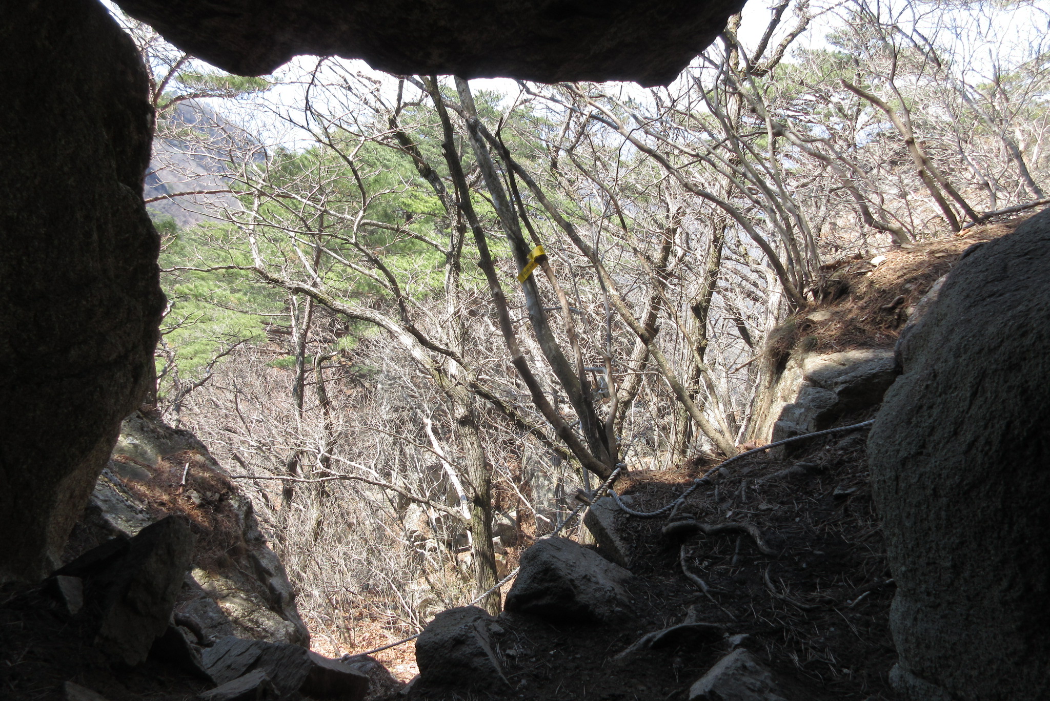 등로길 좁은 바위틈 사이로 진행