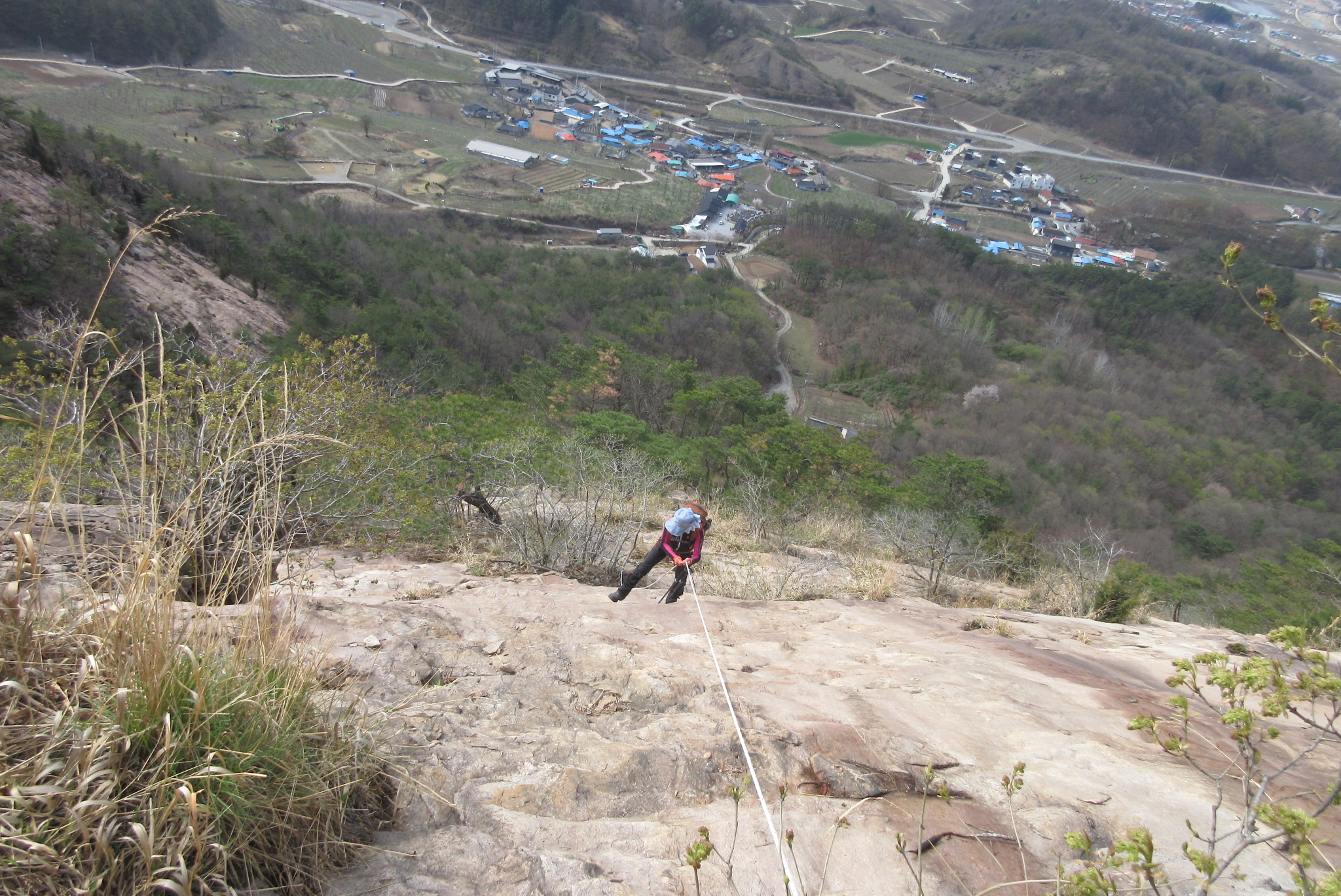 밧줄타고 내려오고 있습니다.