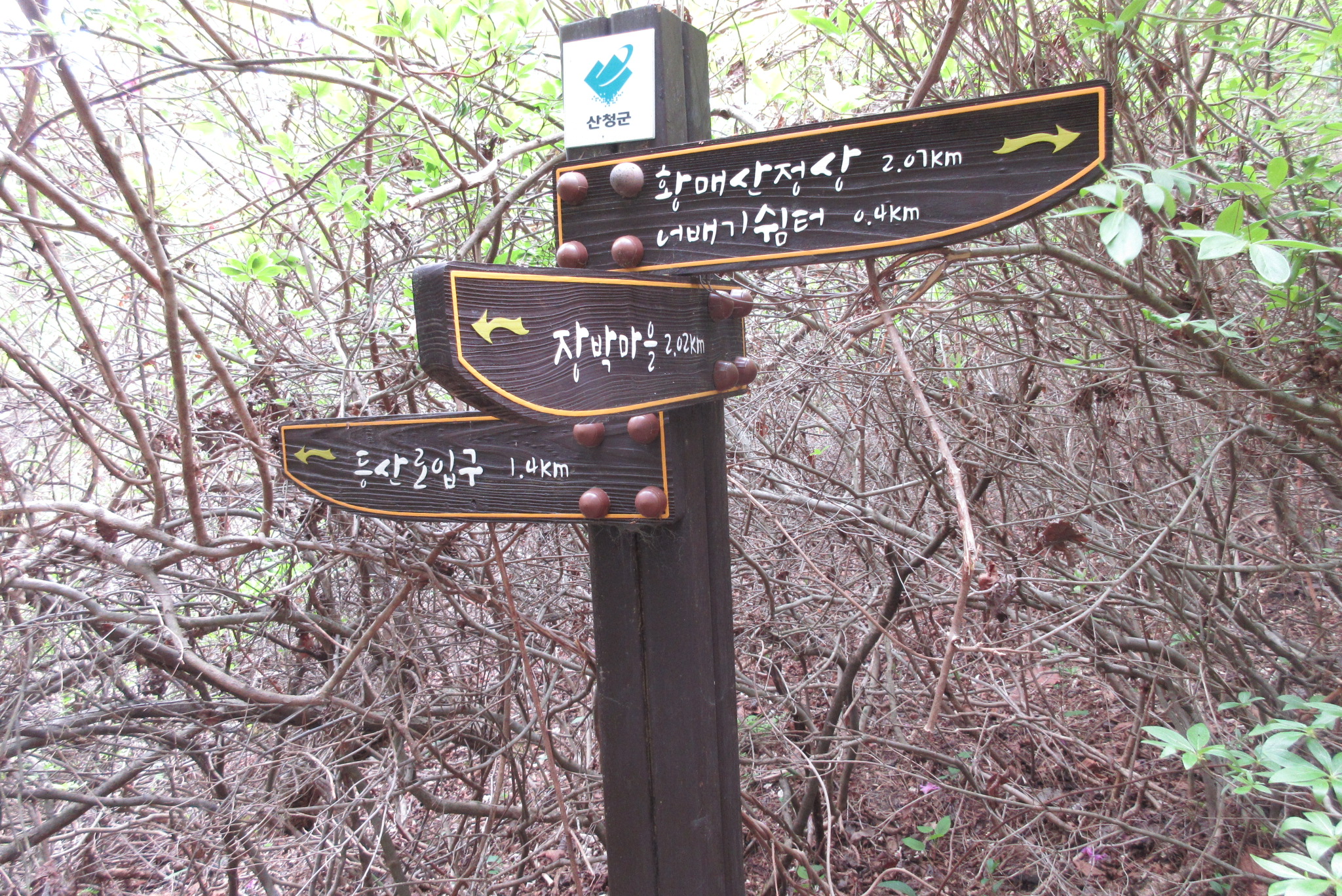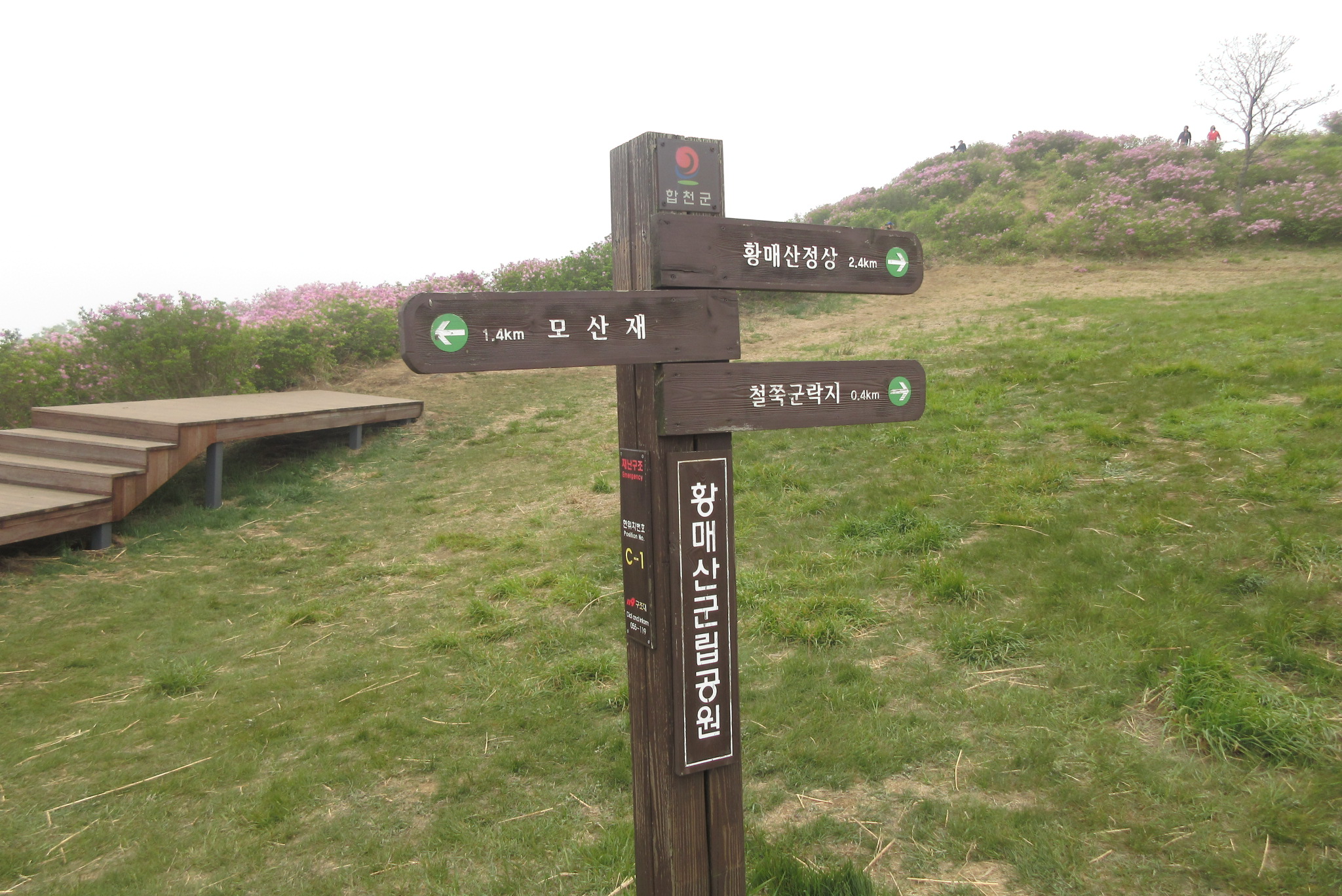 황매산 쉼터 갈림길 이정목