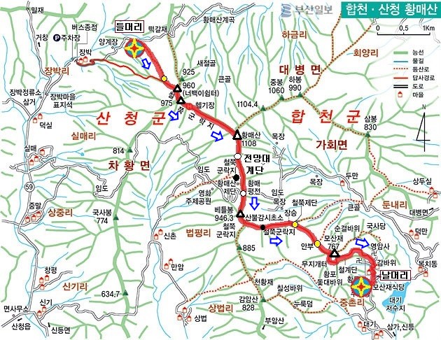 산청.합천군. 황매산 산행지도