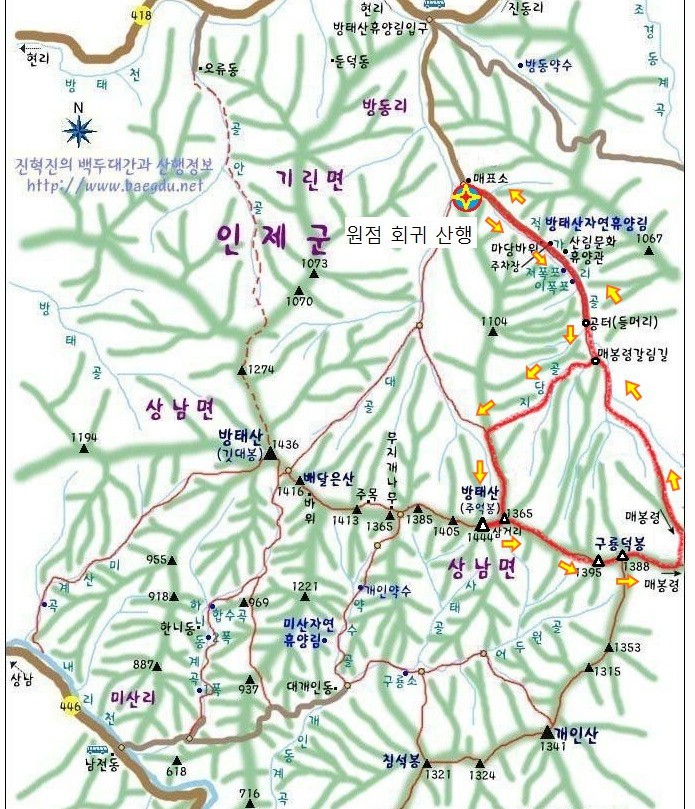 방태산 산행지도.