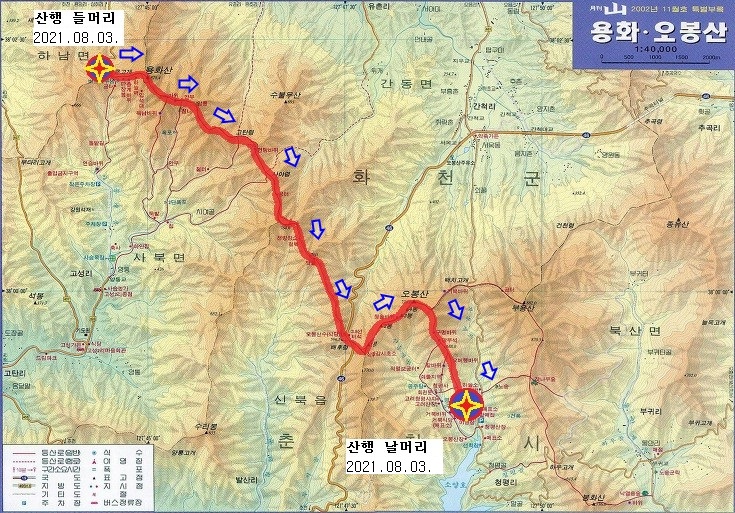 용화산 & 오봉산 산행지도