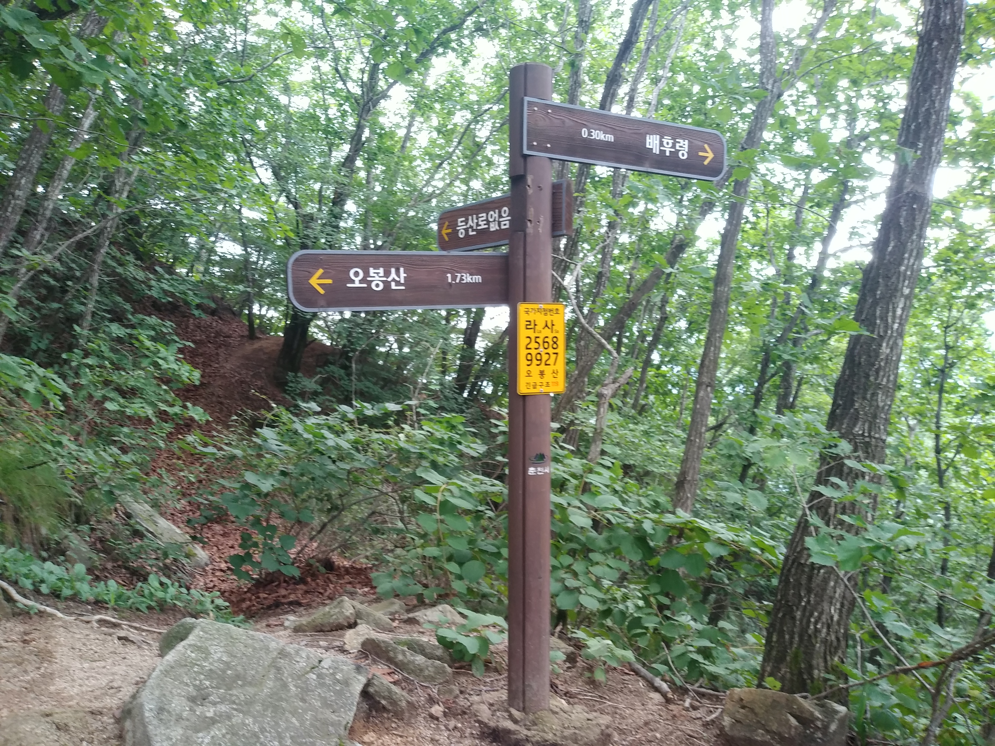 오봉산 배후령 갈림길 삼거리 이정목 14:00