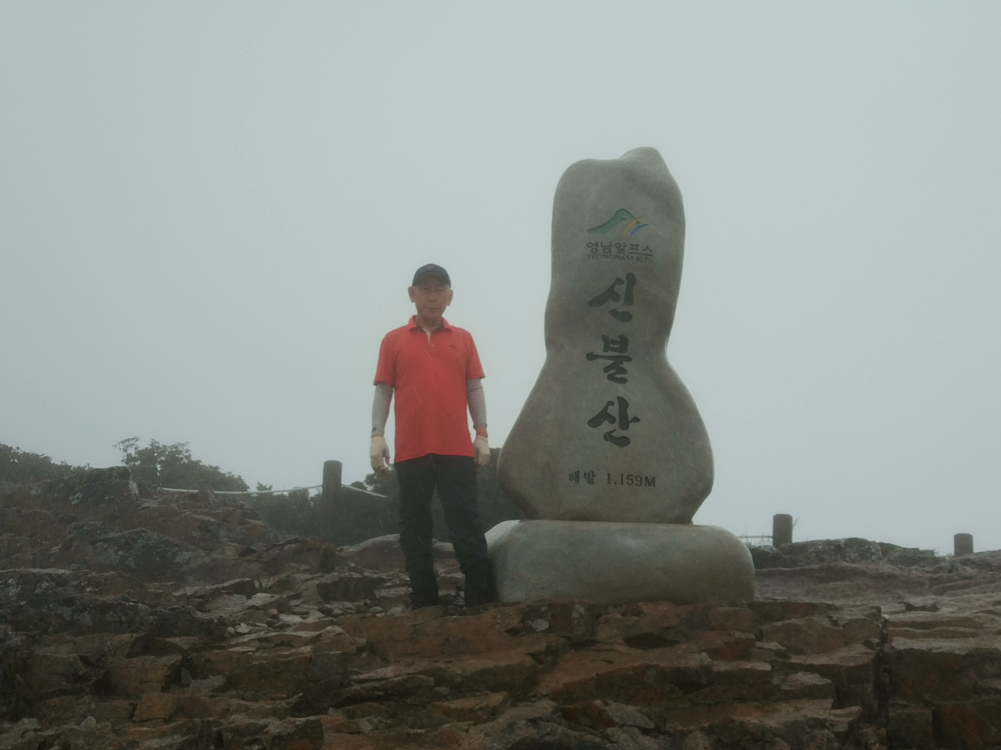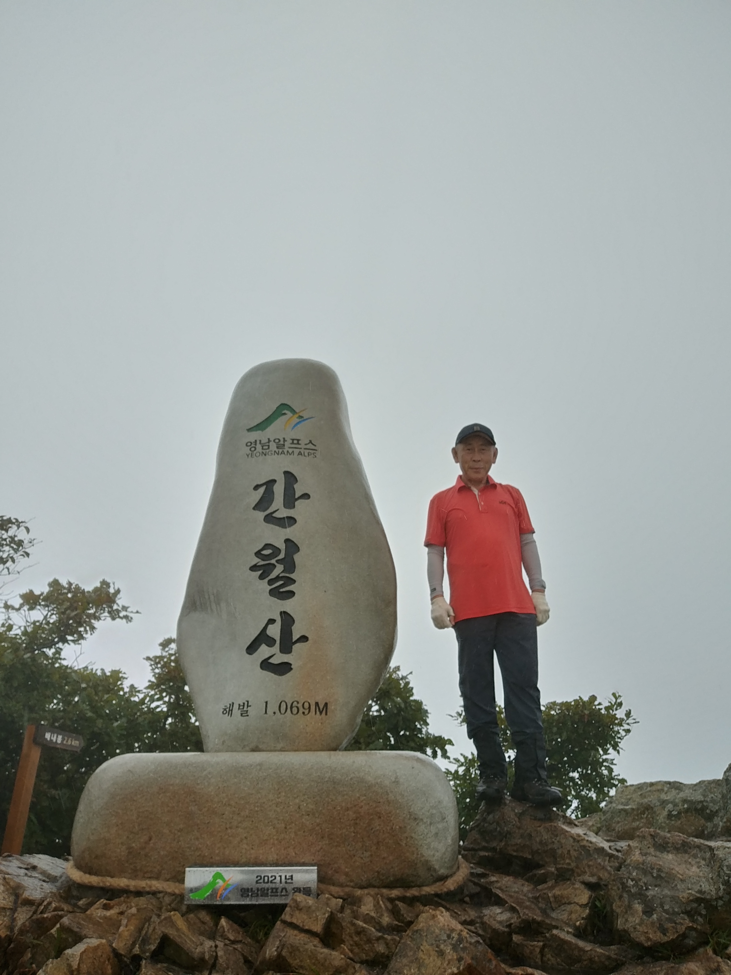 영축산 정상 표지석에서 인증 15:28