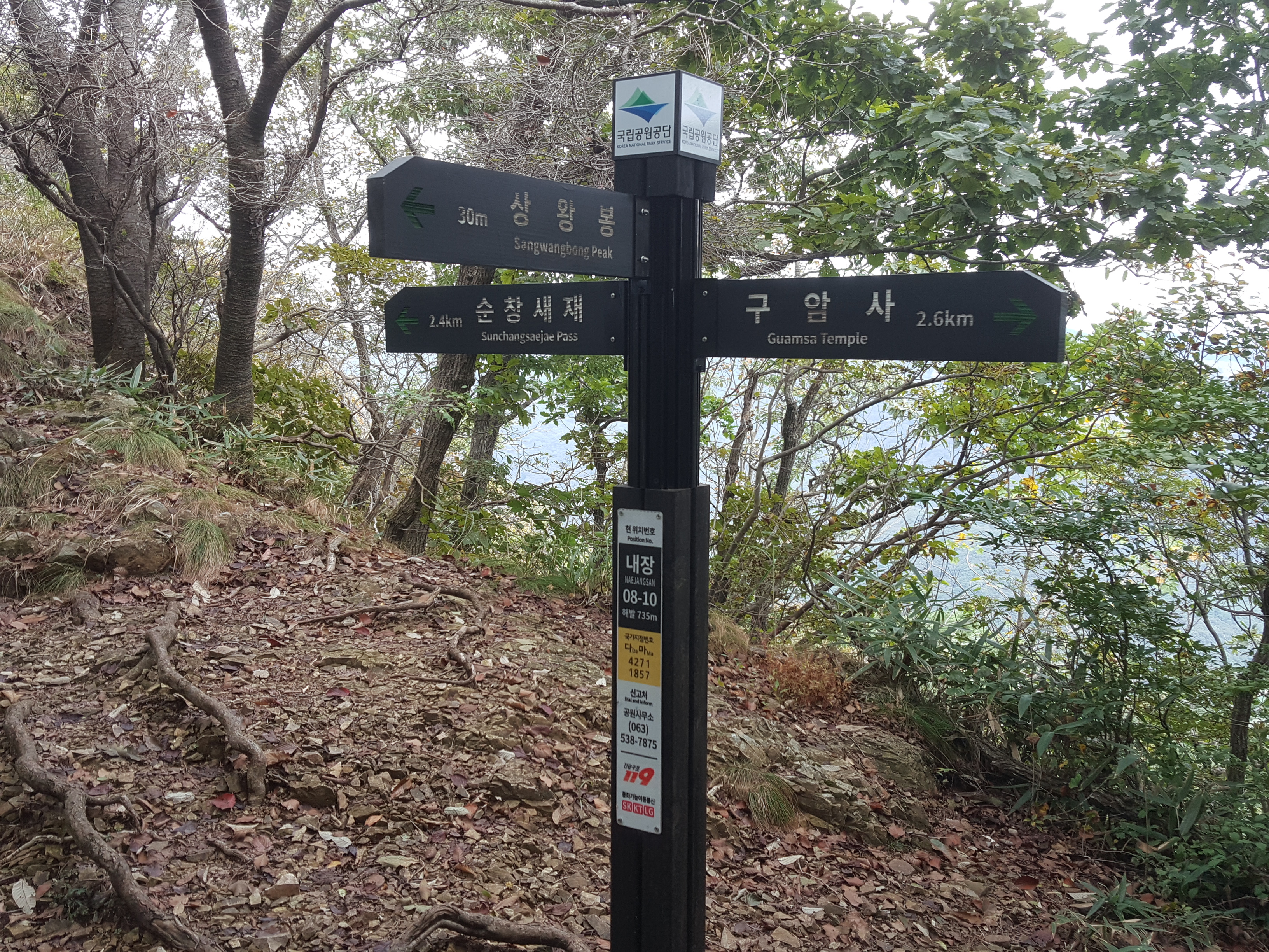 상왕봉 정상 이정목 순창새재 방향으로 진행 12:03