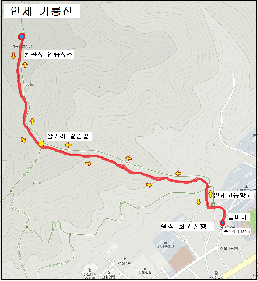인제 기룡산 산행지도