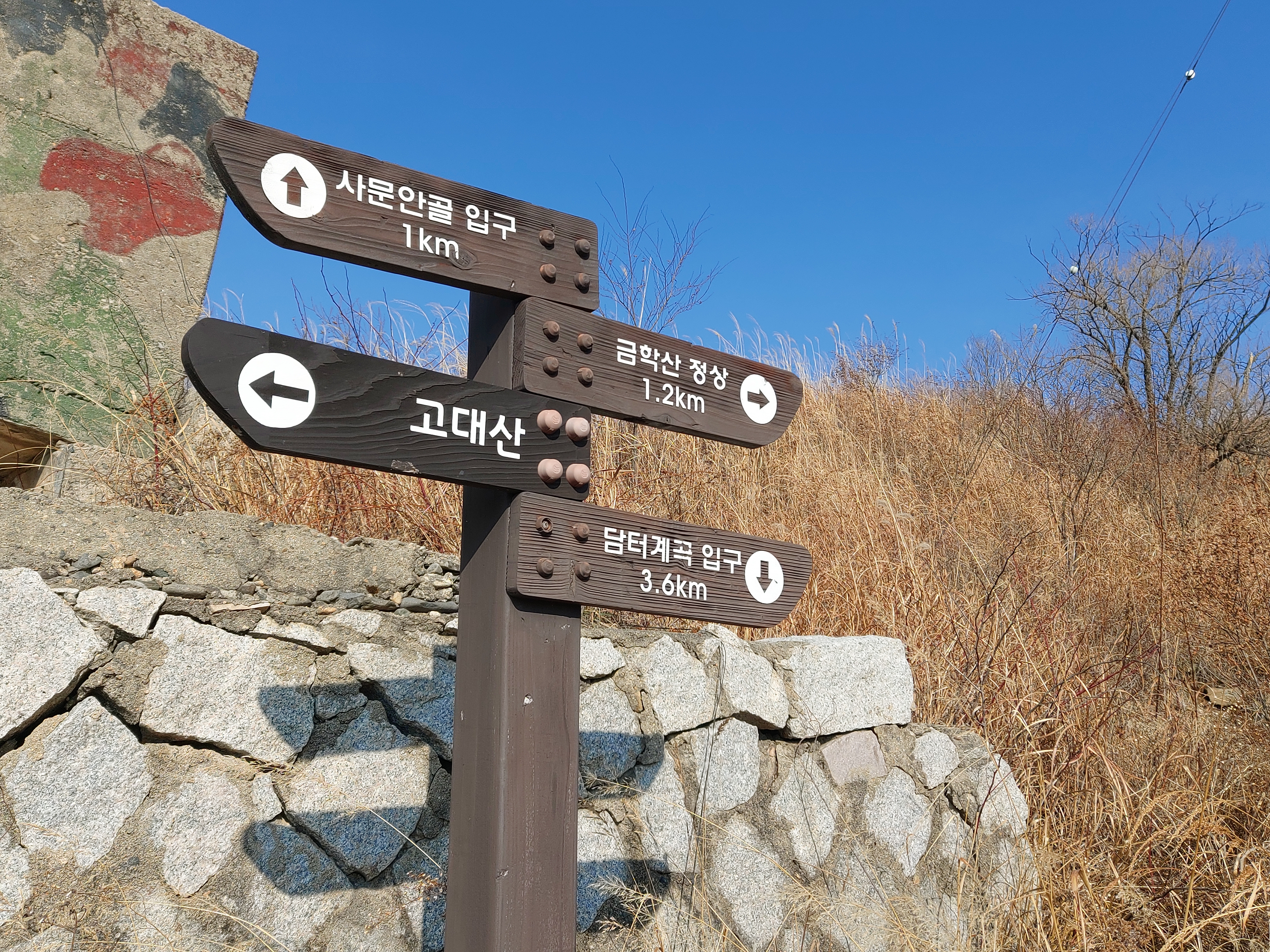 지장산 고대산 갈림길 삼거리 이정목 13:16
