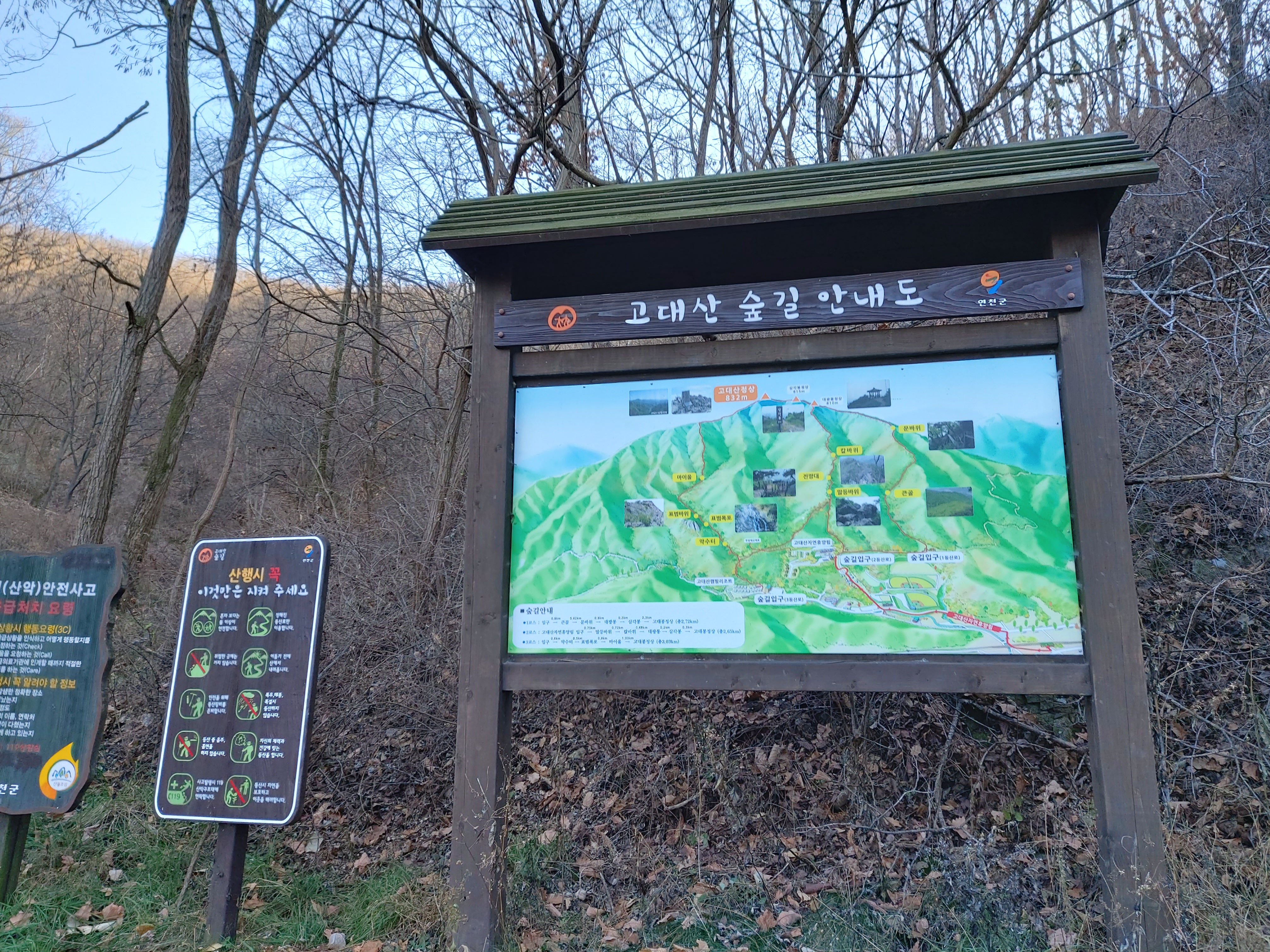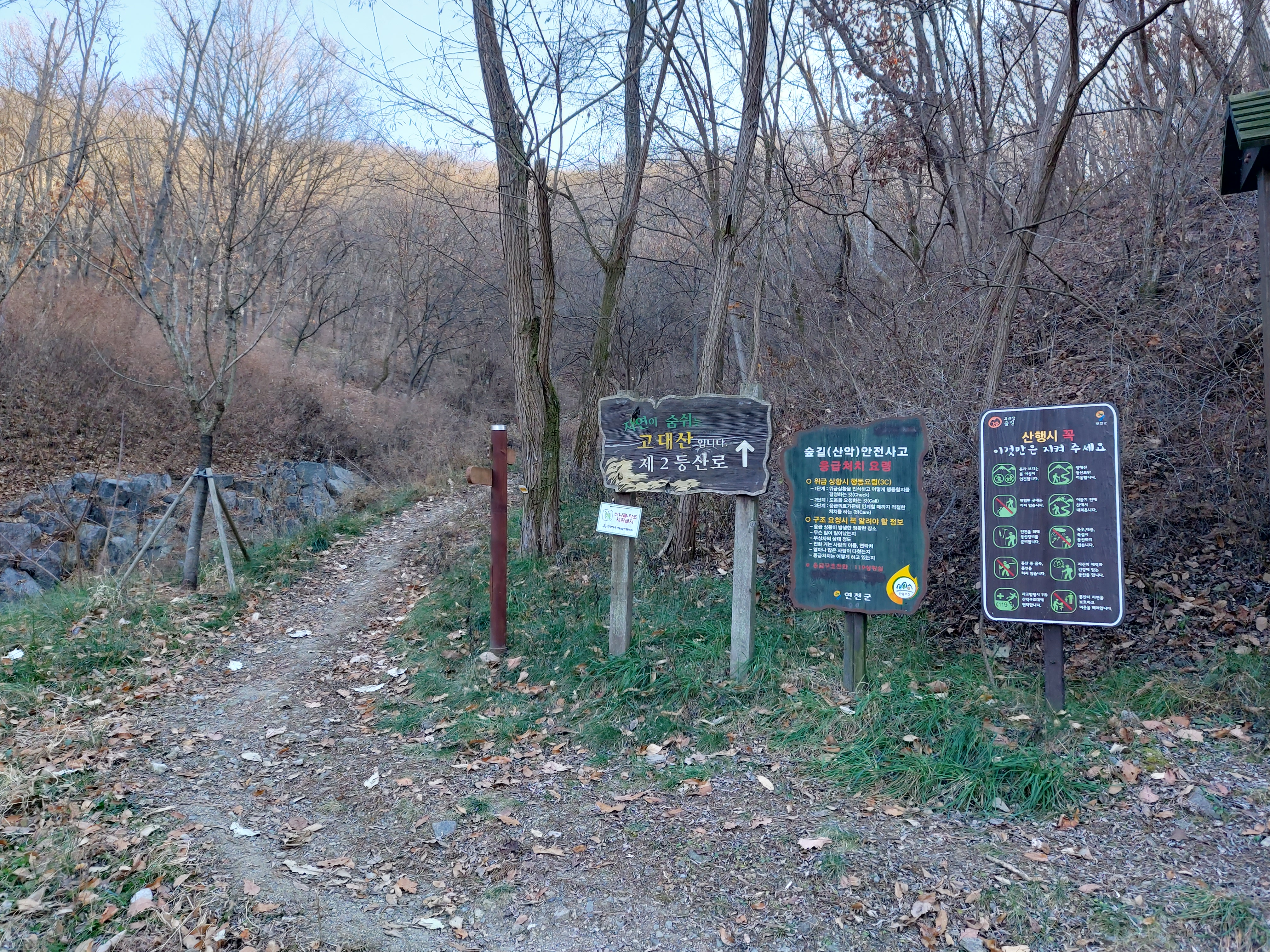 고대산 2코스 입구 등산로 안내판 15:19