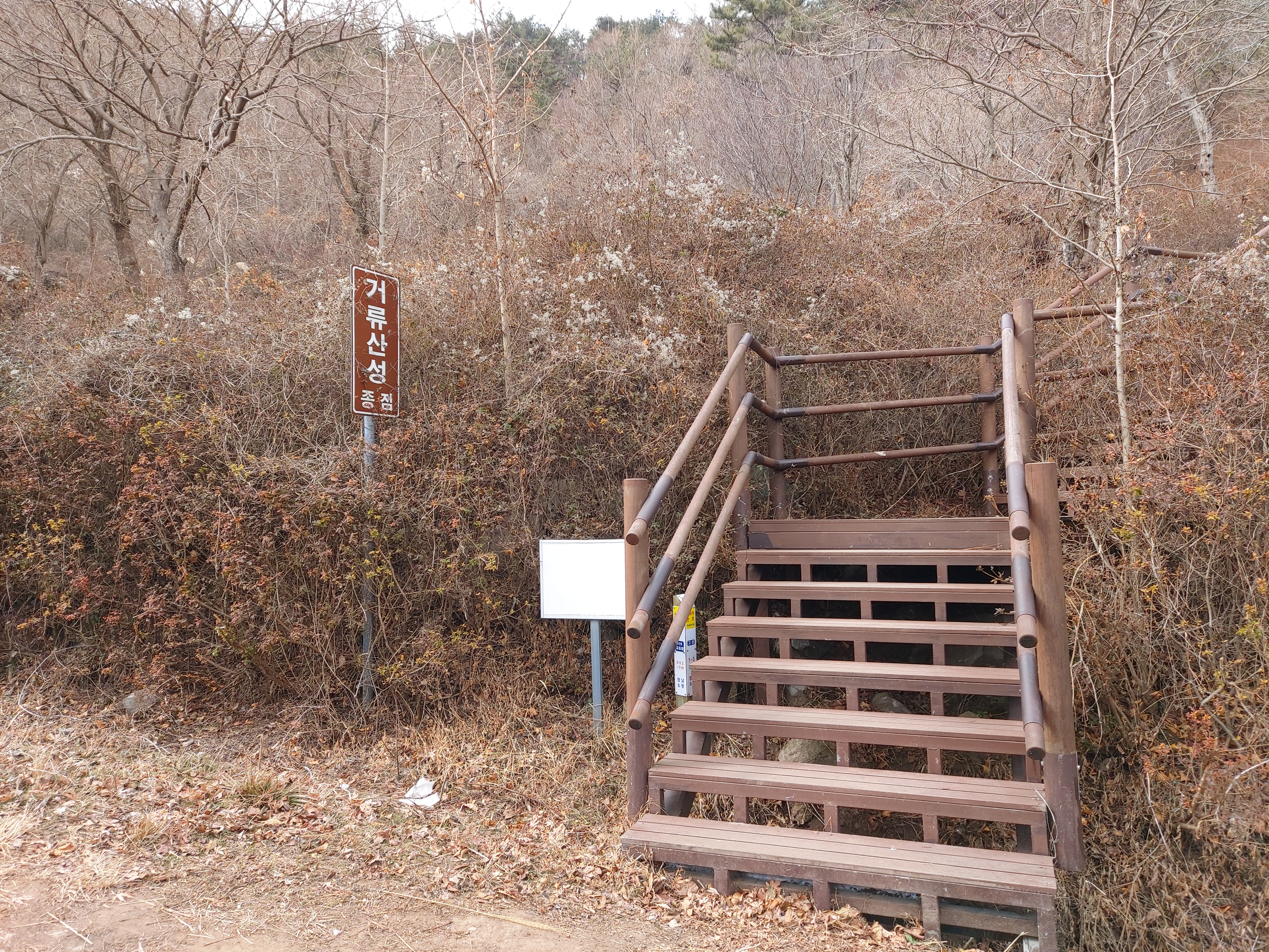 거류산성 종점 표지판 소형차 종점 정상 계단으로 진행 12:02