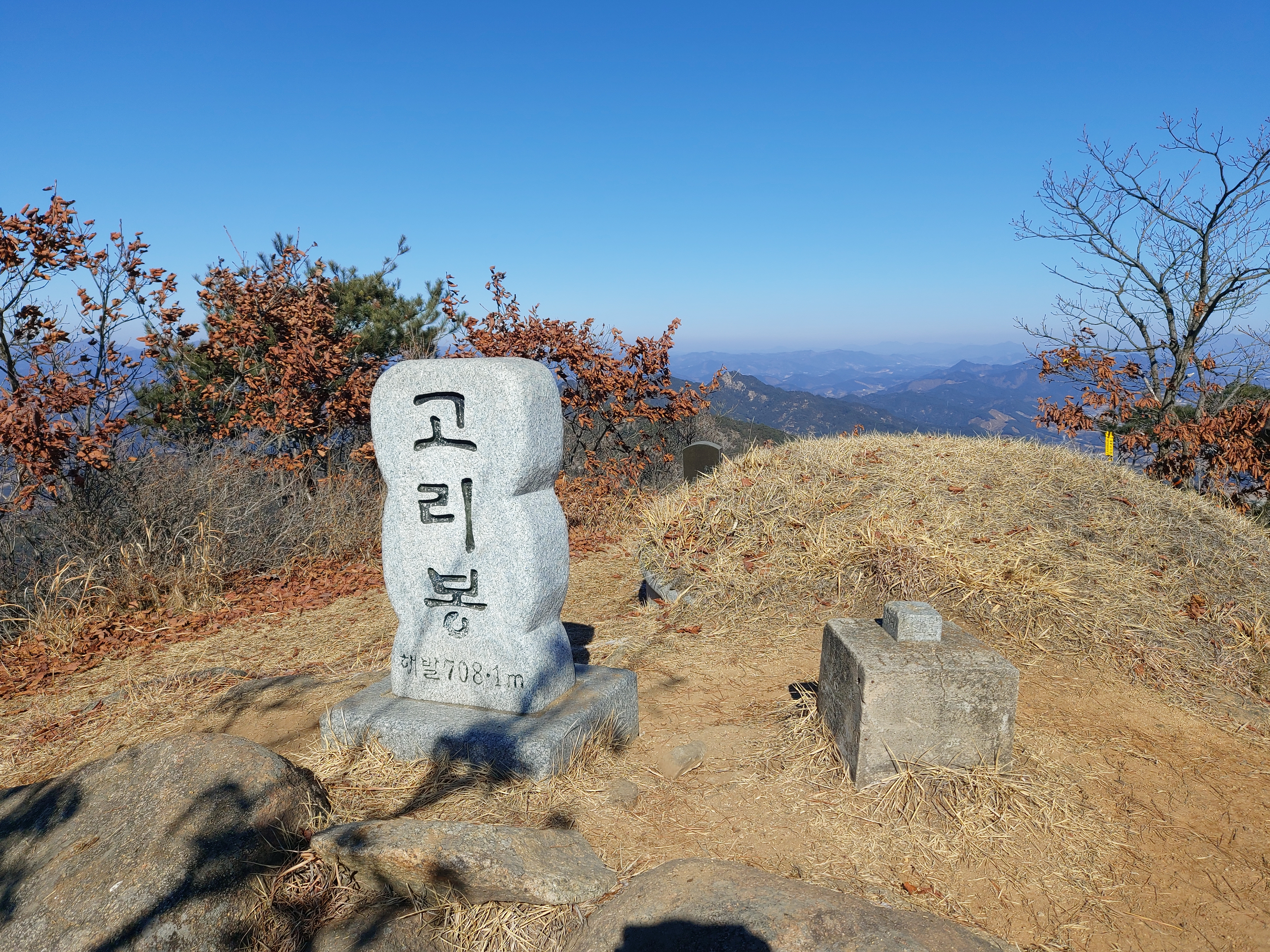 고리봉 정상 표지석 과 정상 묘지