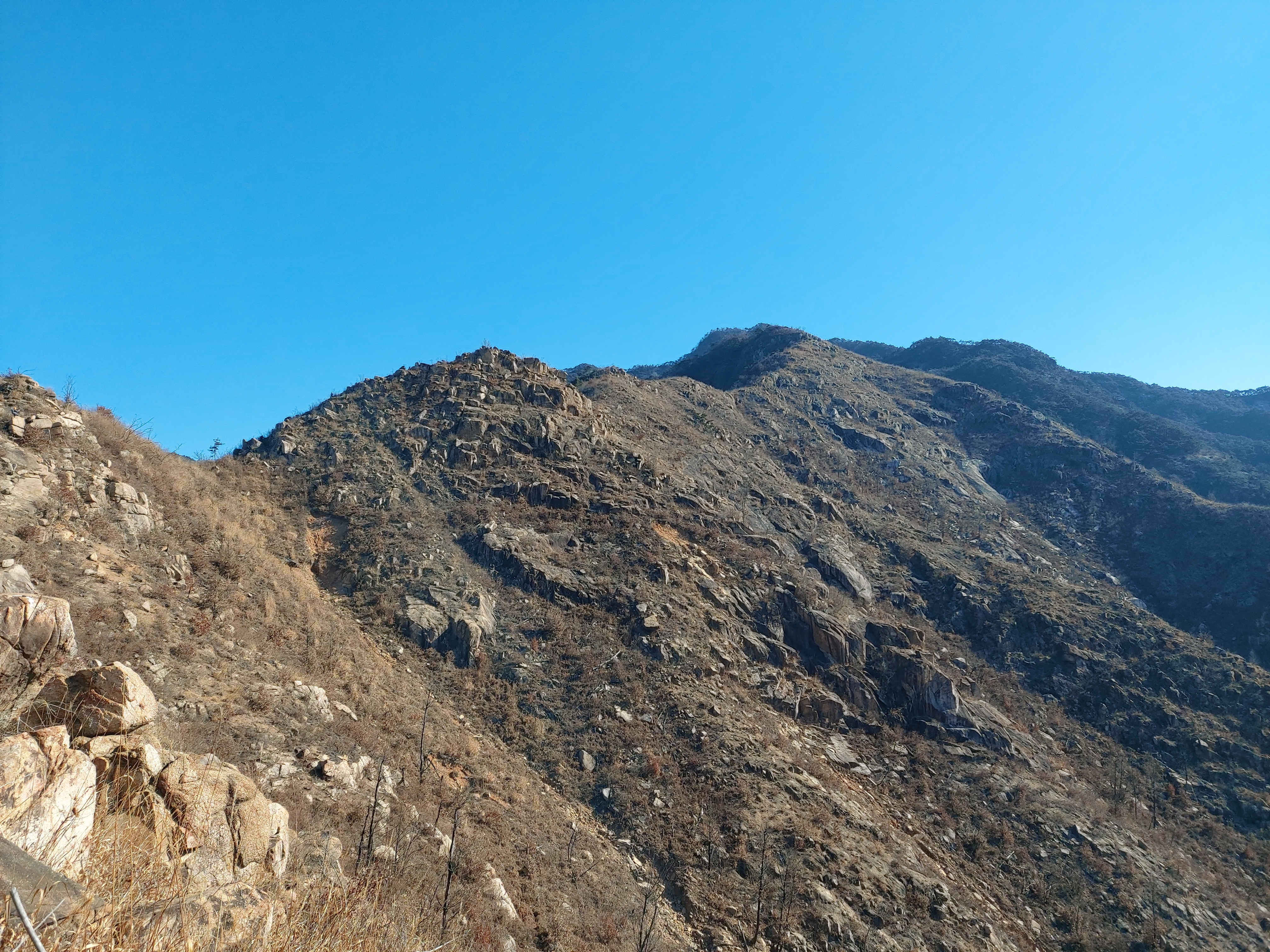 안부에서 고리봉 오르는 암릉선 산불화재로 민둥산 11:09