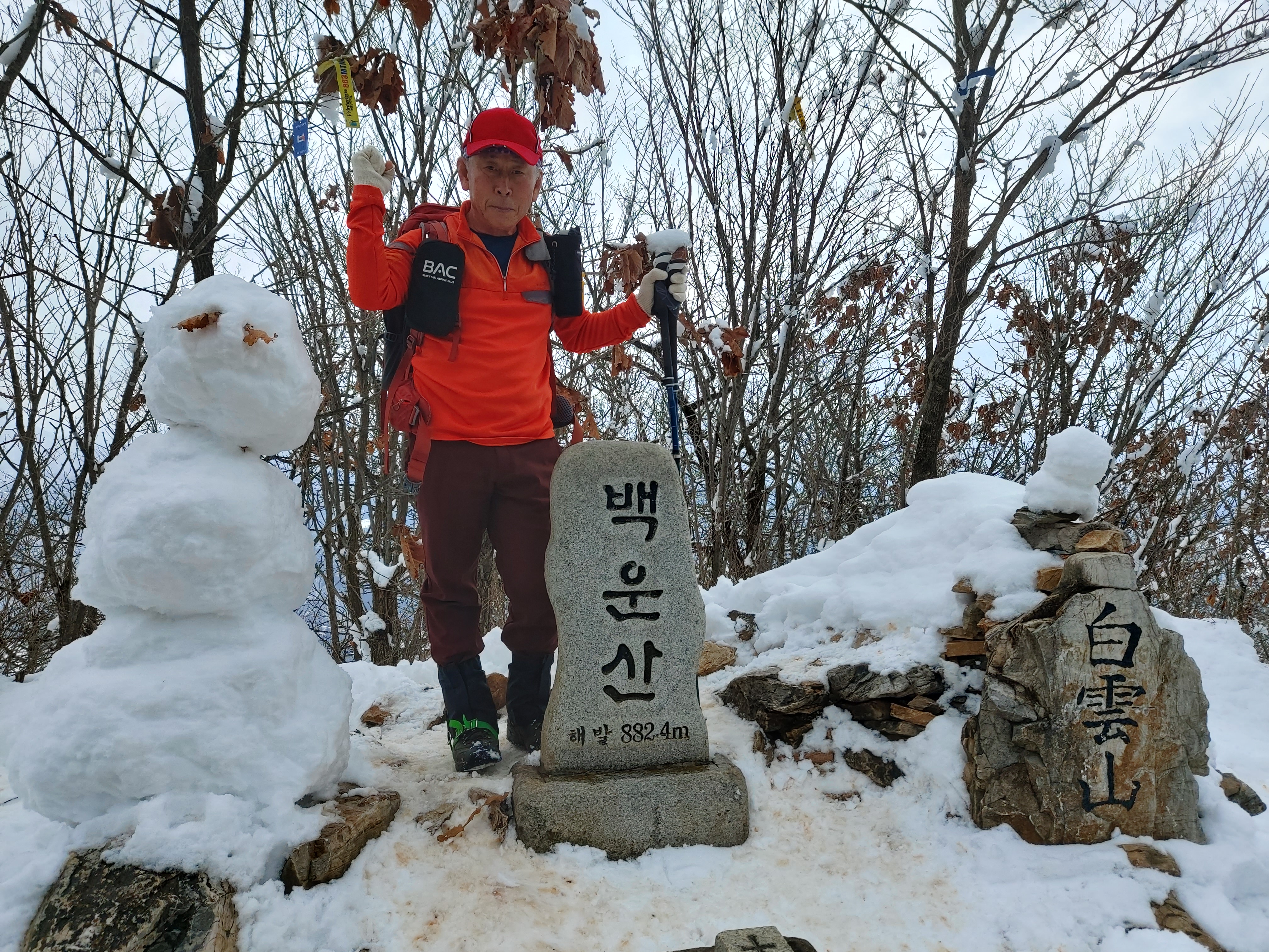 백운산 정상 표지석에서 인증사진 11:47