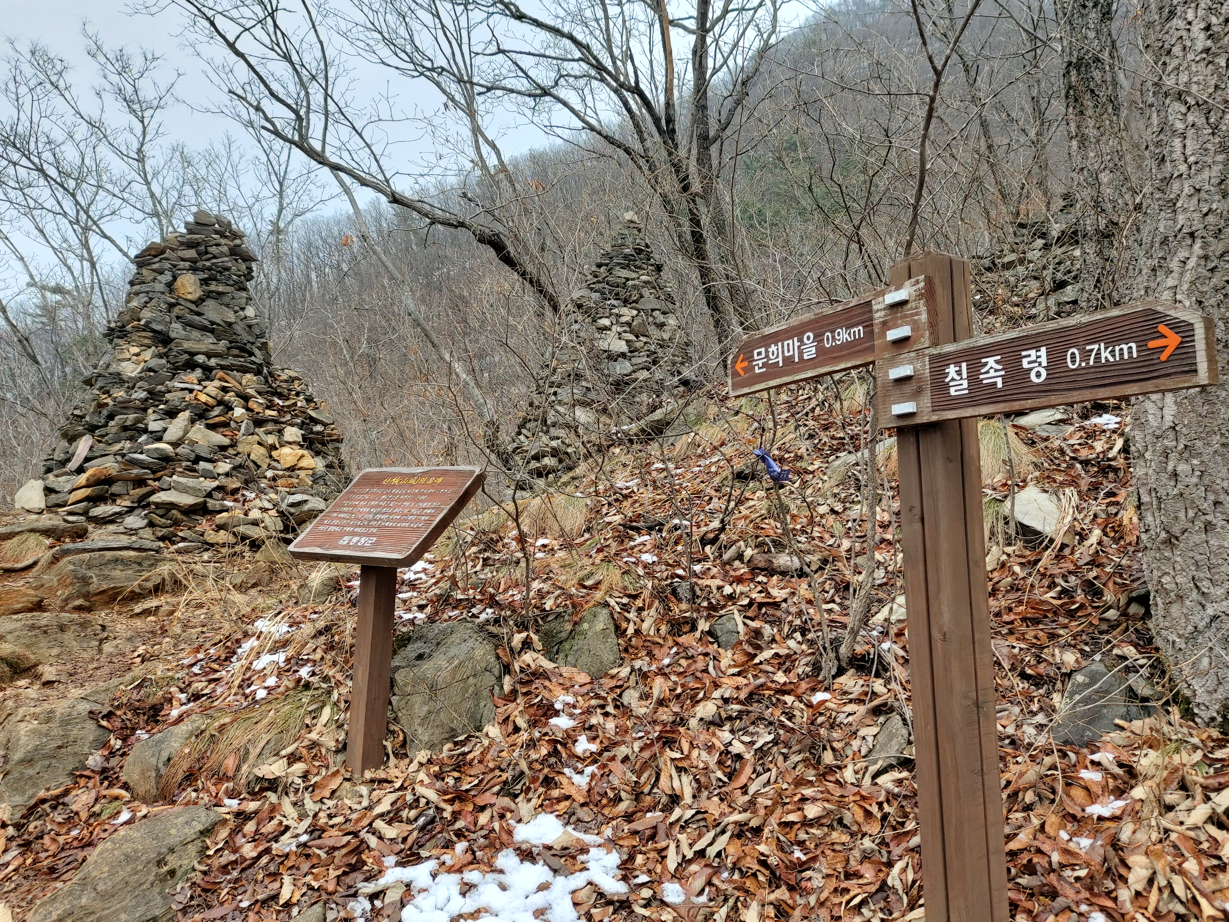 칠족령갈림길 - 성터돌탑 – 문희마을 하산