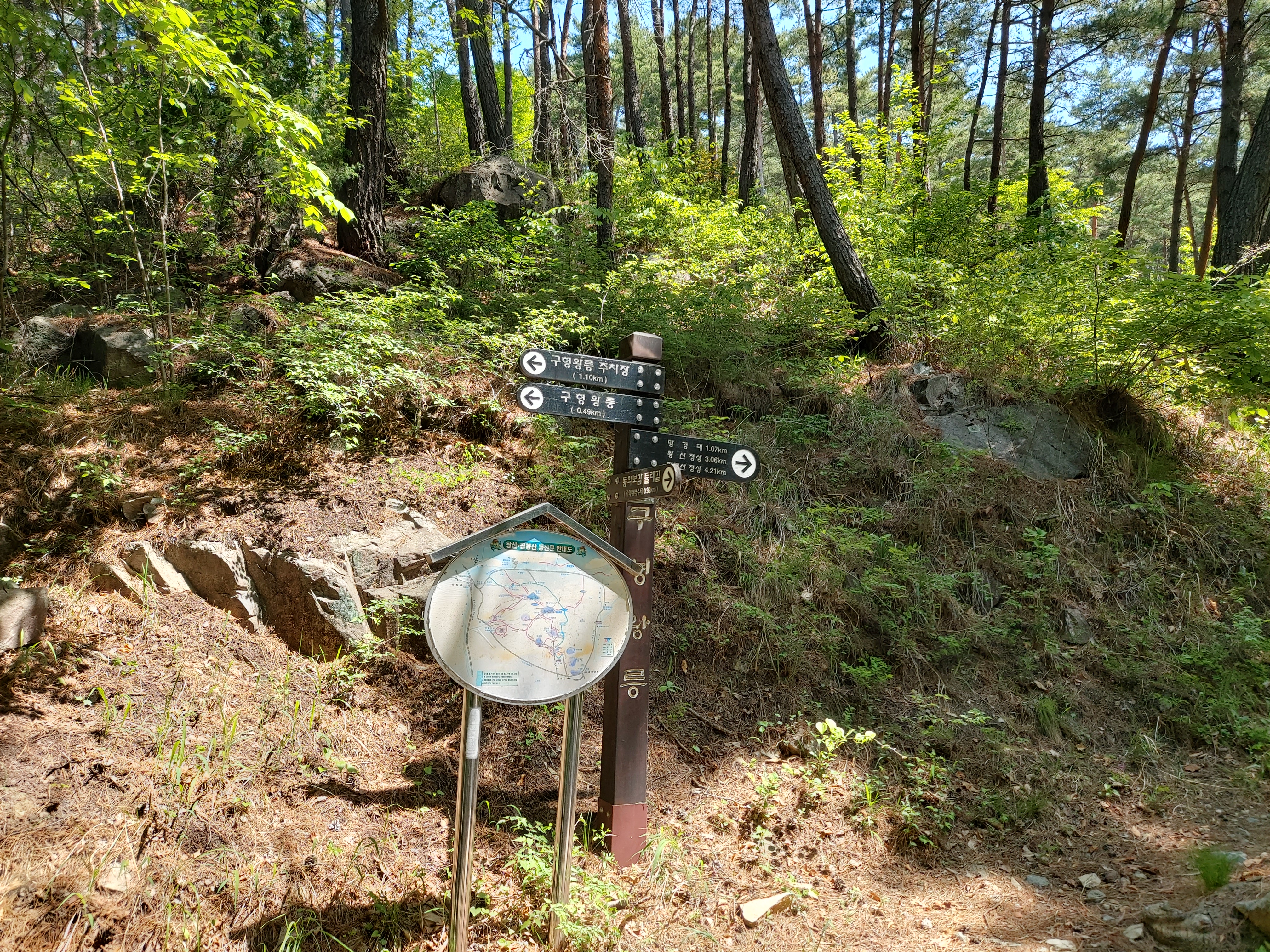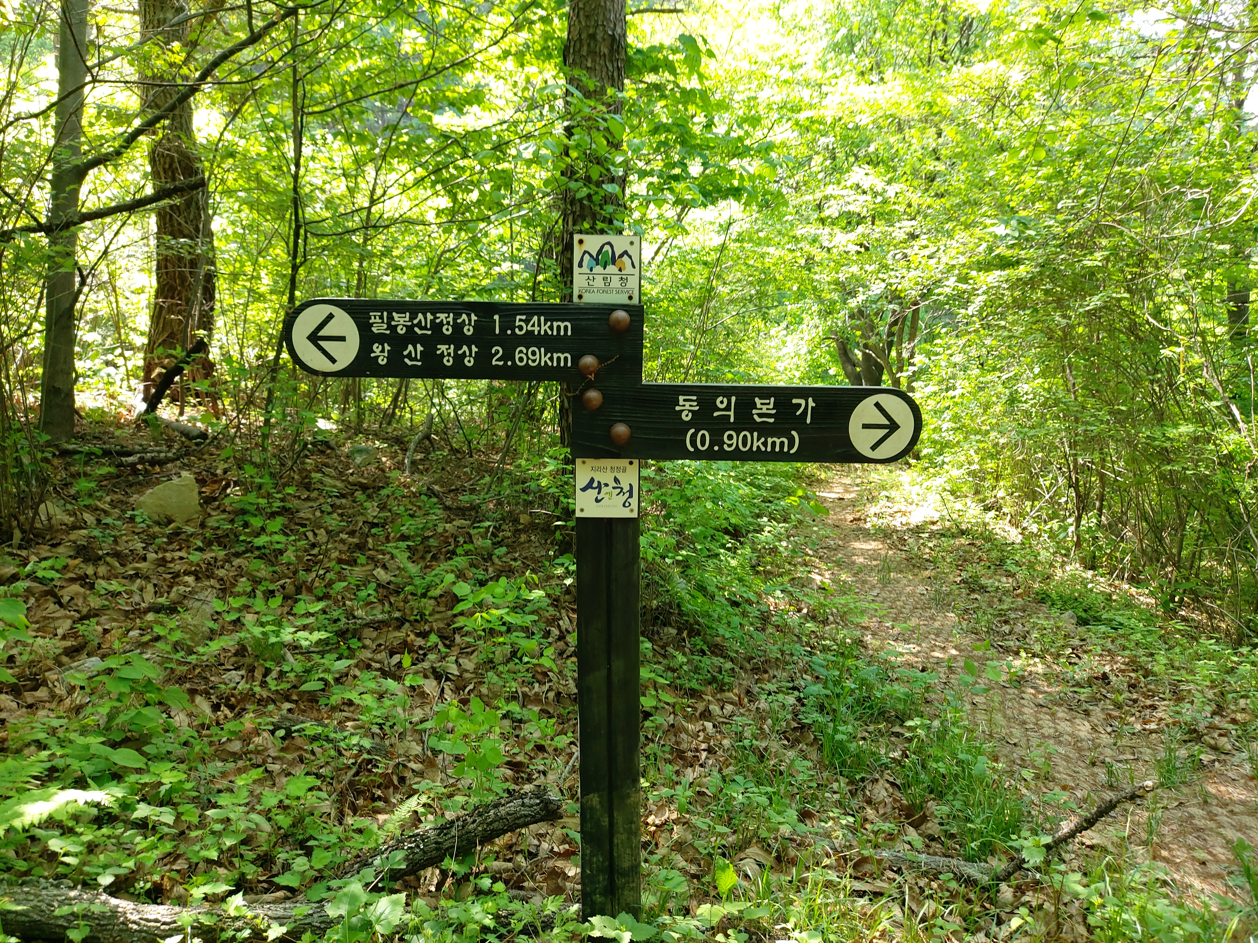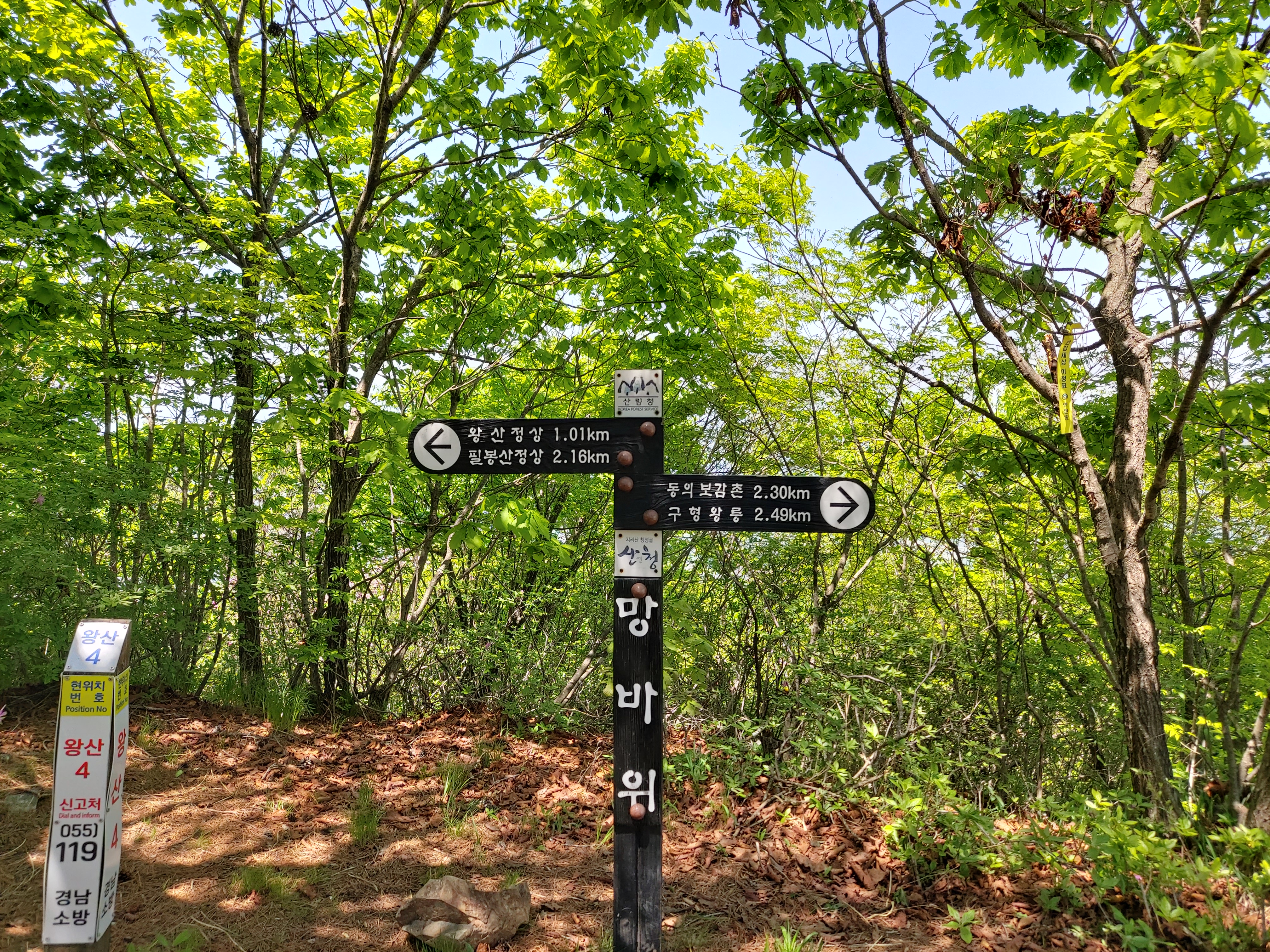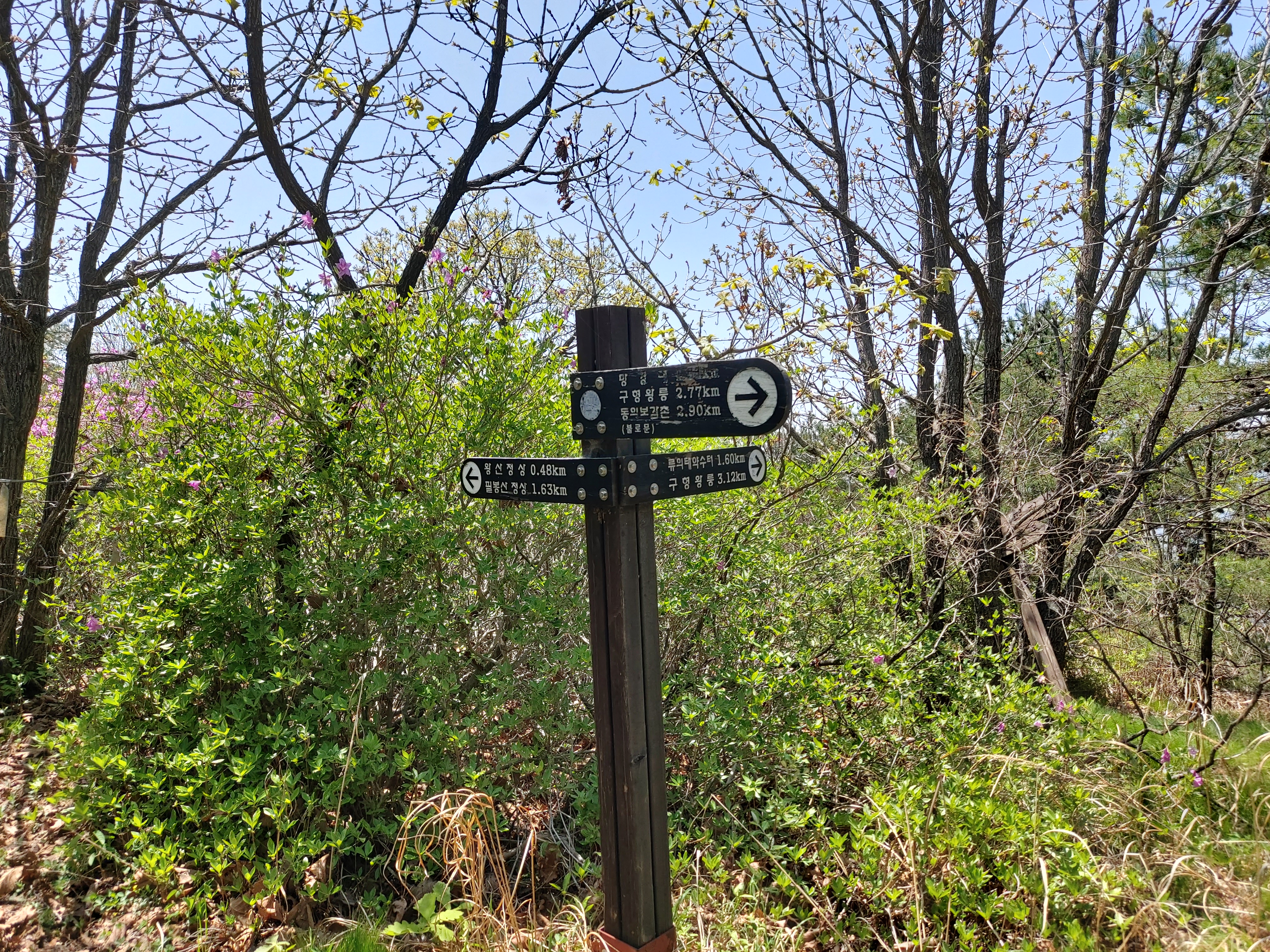 왕산 정상 류의태 약수터 갈림길 이정목 12:51